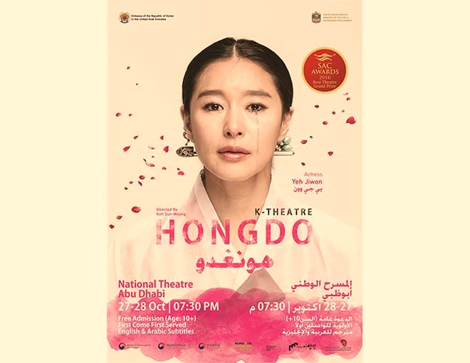 아랍 에미레이트(United Arab Emirates)의 아부다비 하면 황금빛 사막과 상상을 초월하는 도시 발전이 공존하는 꿈의 도시. 최고급 승용차와 호화로운 저택을 보유한 석유 부호. 백색의 스카프를 머리에 두르고 흰 드레스 형식의 의상을 입은 아랍 남성. 눈까지 가린 보수적인 검은색 의상으로 온몸을 꽁꽁 싸맨 여성이 연상되는 곳이다. 그곳에서 2016년 10월, 한국의 연극 <홍도>가 공연되었다.