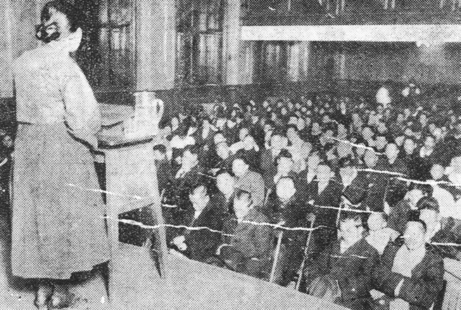 1926년 자유연애 강연회에서 연설하는 신여성 운동가 김원주. 후일 불가에 귀의하여 일엽 스님이 된다