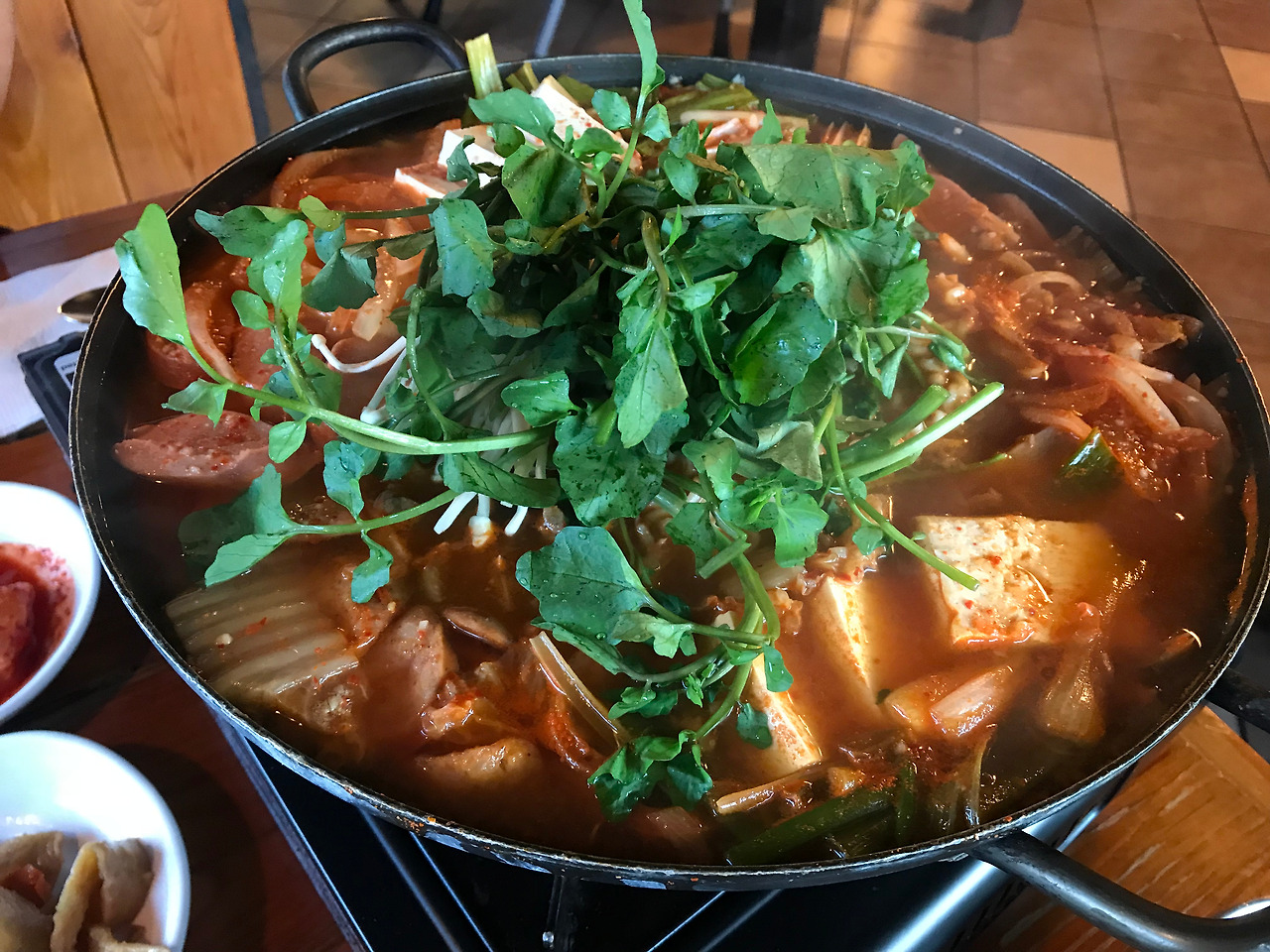 바깥 양반을 밖에서 만나 함께 한식당으로 갔다. 우리가 처음 간 곳은 오우, 주차장에 사람이 아-무도 없었다. 식당은 무조건 손님 순환율이 높은 곳으로 가자는 것이 우리의 식당 고르는 기준. 구글 리뷰를 보니 들쑥 날쑥해서 다른 곳으로 고고씽. 덕분에 올랜도 구경을 더 할 수 있었다. 우리가 고른 한식당은 비원이다. 바깥 양반이 일을 하느라 고생하셨으니 바깥 양반이 최근 노래를 불렀던 부대찌개를 시켰다. 가격은 36불.