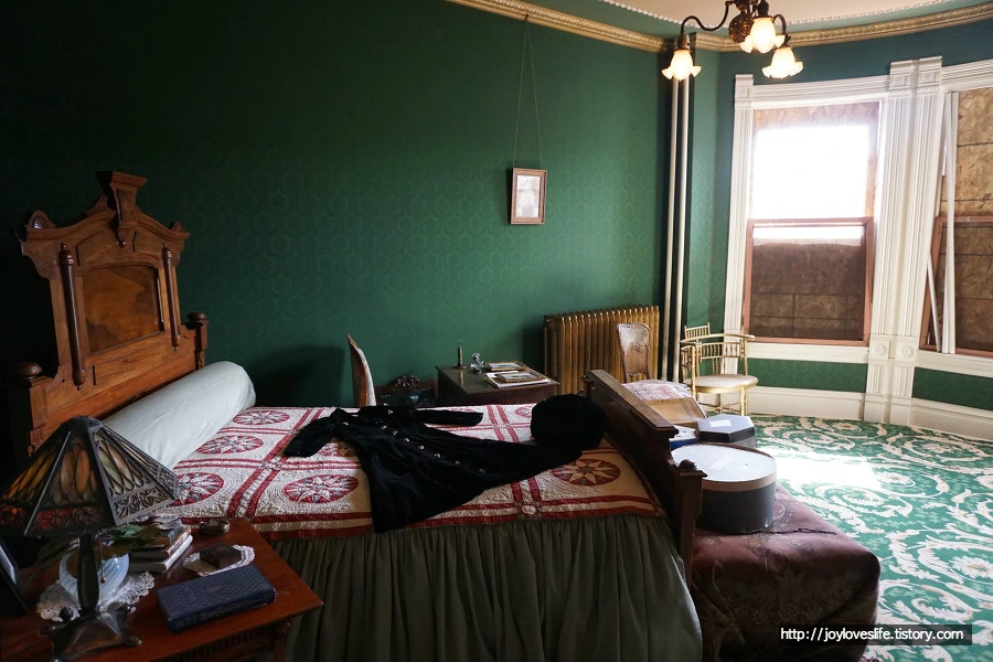 아래 사진은 이 집의 2층에 있는 마가렛 브라운의 방이다. 빅토리안 사회는 특이하게도 남편과 아내가 각 방을 쓰는 것이 문화였다고 한다. 아내의 방은 이렇게 아일랜드의 색깔인 녹색으로 꾸며져 있다.
