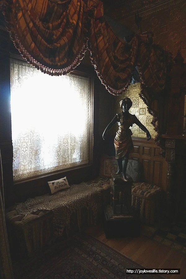 이 사진은 응접실 사진인데, 이 응접실 벽에 걸려있는 사진은 콜로라도 로키산을 그린 유화이며, 그 아래에 있는 검고 흰 접시는 몰리 브라운이 일본 여행에서 사 온 일본 접시라고 한다. 19세기에도 이토록 전세계를 유랑하며 쇼핑을 했다고 하니, 얼마나 부자였는지 상상이 간다.