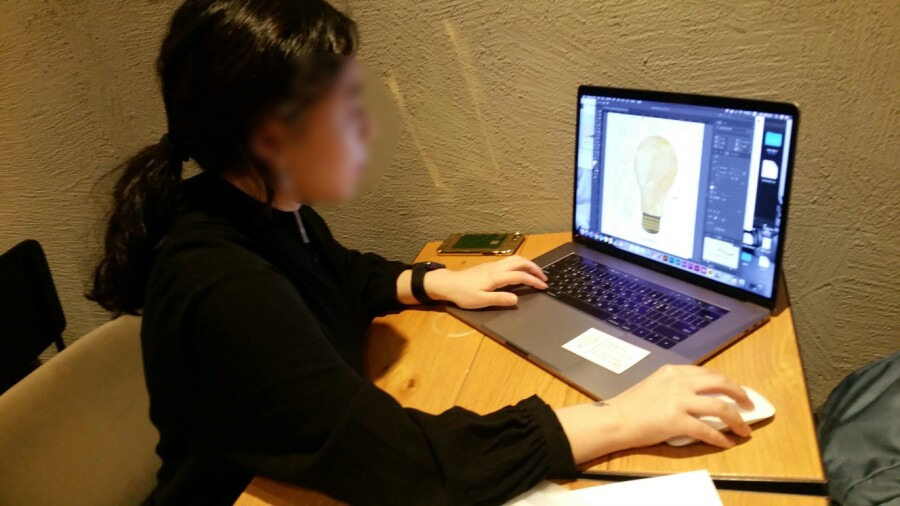 합정 카페에서 디자이너분을 만나 원하는 사항을 말씀드리니 뚝딱뚝딱 만들어내신다.