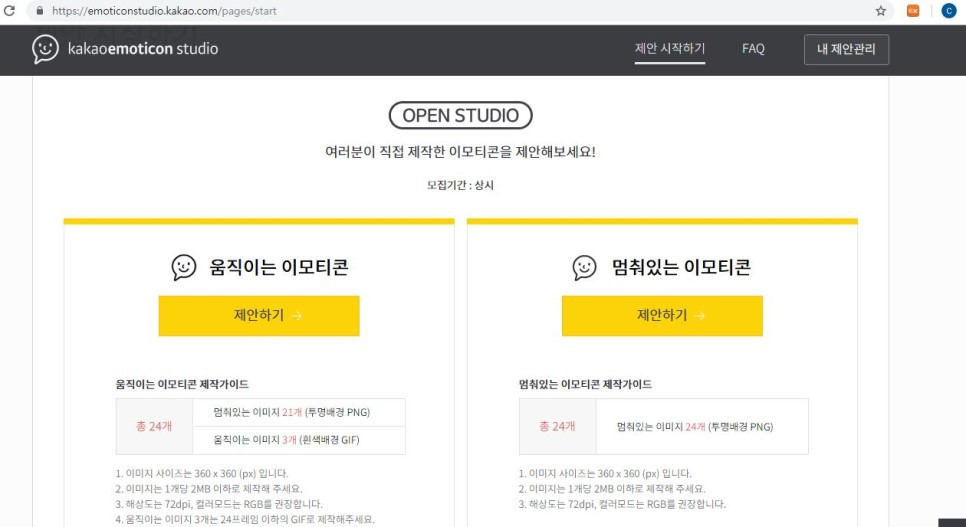 (1) 홈페이지(https://emoticonstudio.kakao.com/pages/home)에 접속하여