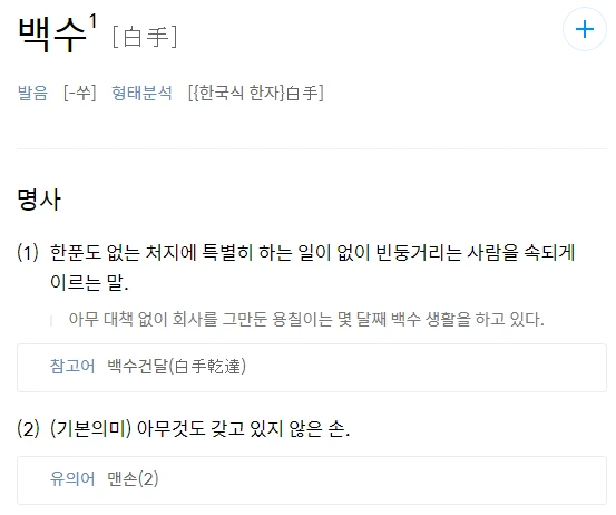 다음 사전에 검색하면 나오는 백수의 정의.