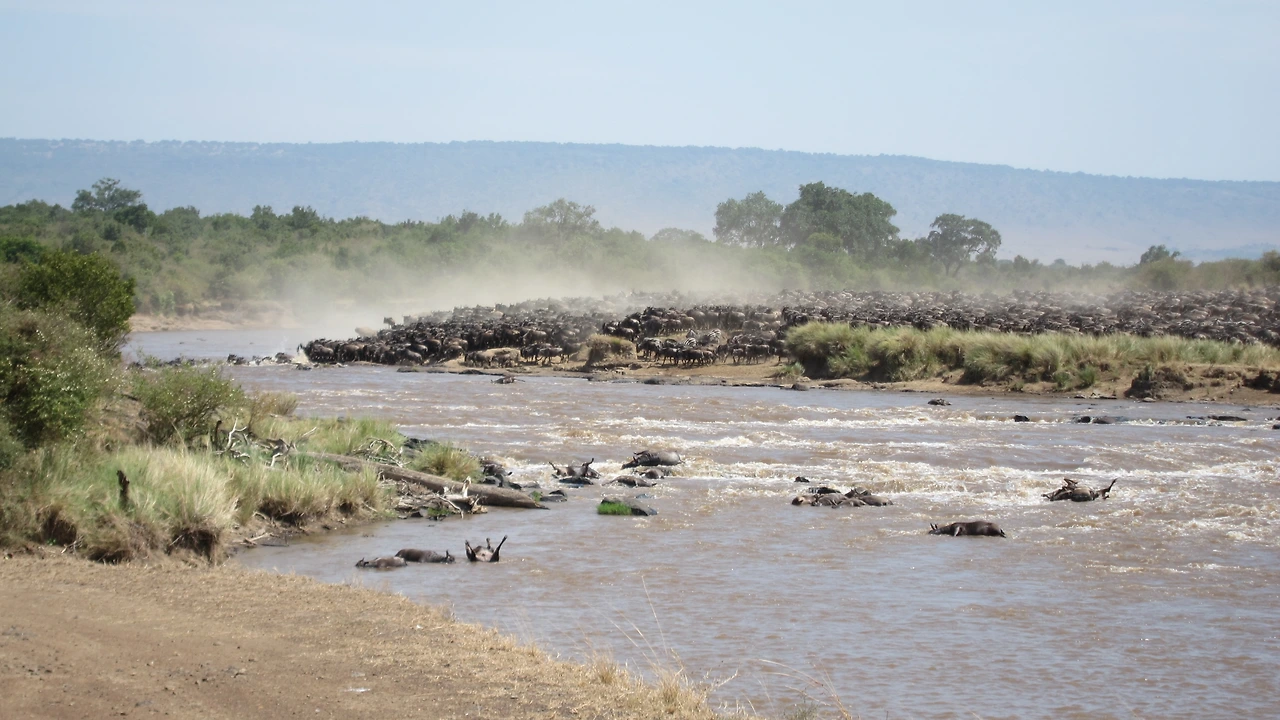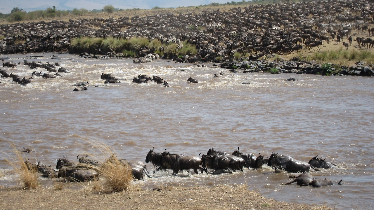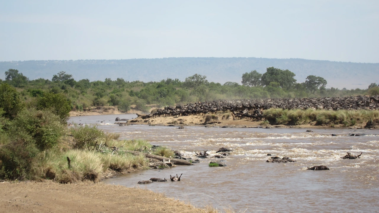누우 떼가 강을 건너는 것은