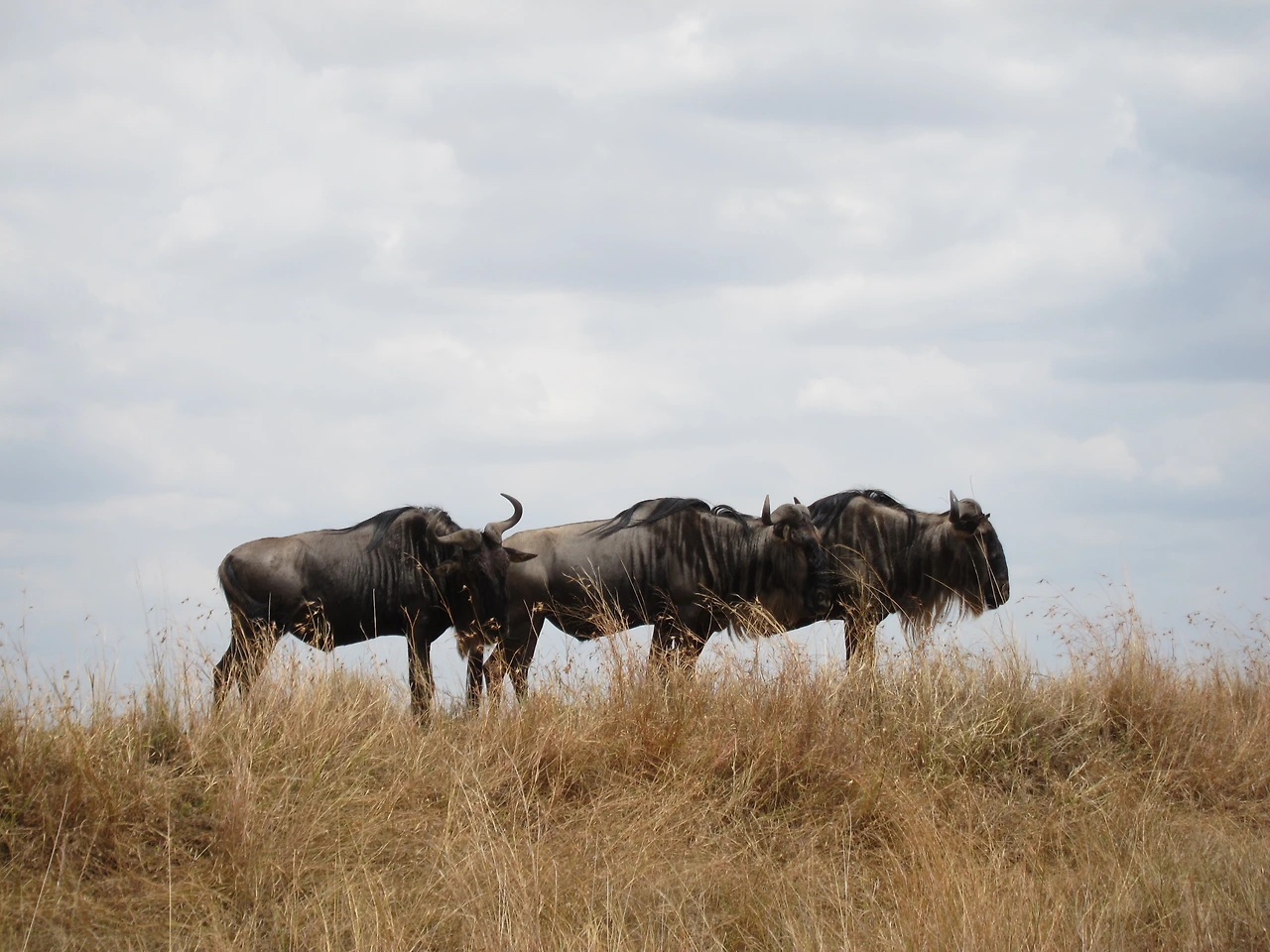 누우 떼의 이동을 보기 위해 모두가 숨 죽여 기다리고 있는 중