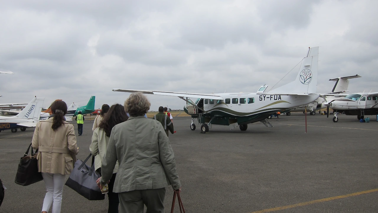 경비행기를 타기 위해 이동 중인 모습. 날씨가 다소 흐리다.