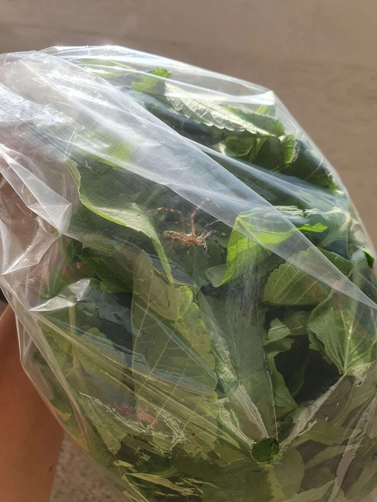 "깻순 사 온 거에 거미가 들어있어 T.T 어쩌지?"