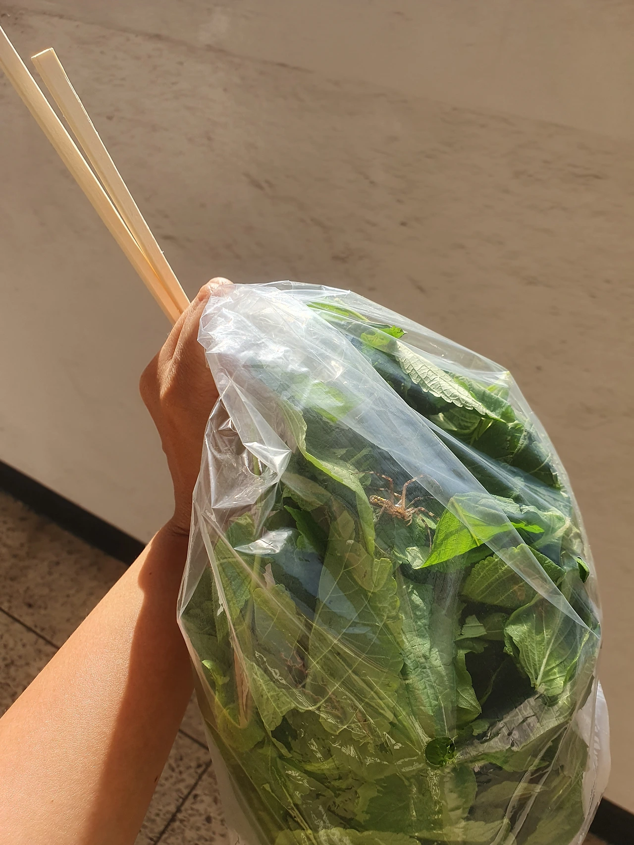 혹시 몰라 나무젓가락도 야무지게 챙기고 서둘러 나갈 준비를 한다. 정신없는 와중에 엄마는 음식 쓰레기를 내려간 김에 버리겠다며 부산하다. 어찌어찌 다 챙기고 나와 먼저 음식물 쓰레기를 버리고 함께 거미를 놓아준다.