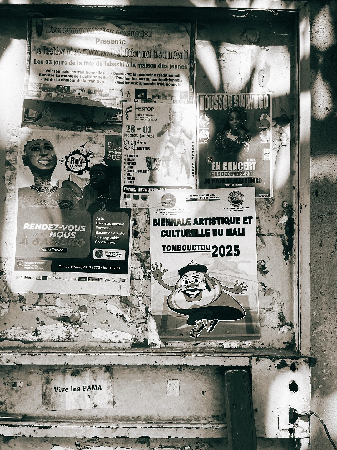 The bulletin board of the center where I am learning Mande arts in Bamako