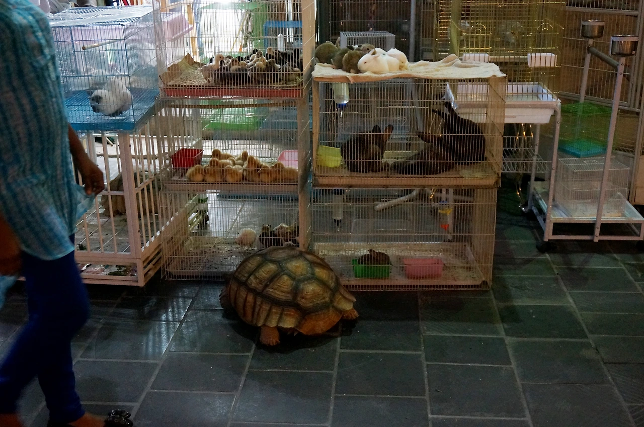두터운 등껍질을 자랑하는 육지 거북이부터 도무지 왜 안 날아가는지 이해가 가지 않는 새들까지, 우리가 생각한 '시장'의 모습을 한참 뛰어넘은 곳이었다.(처음엔 새들이 가짜인 줄 알았다.)