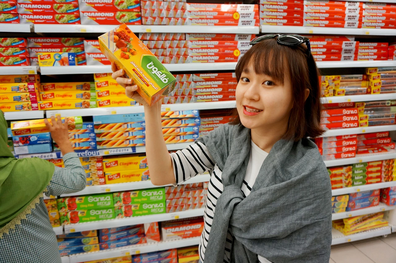 그러나 구경에 앞서 우리에겐 해결해야 할 숙제가 있었다. 수하물이 목적지인 남아공으로 바로 가버리는 탓에 면세점에서 선물로 산 화장품들을 캐리어에 싣지 못했고, 그래서 기내 액체류 제한을 넘게 된 것이다. 승무원은 우리에게 도하에 도착하면 20x20 사이즈의 지퍼락을 사서 화장품을 옮겨담으라고 알려주었다. 운 좋게도 빌라지오 안의 큰 까르푸 매장에서 규정에 꼭 맞는 지퍼락을 발견했다. 심봤다!