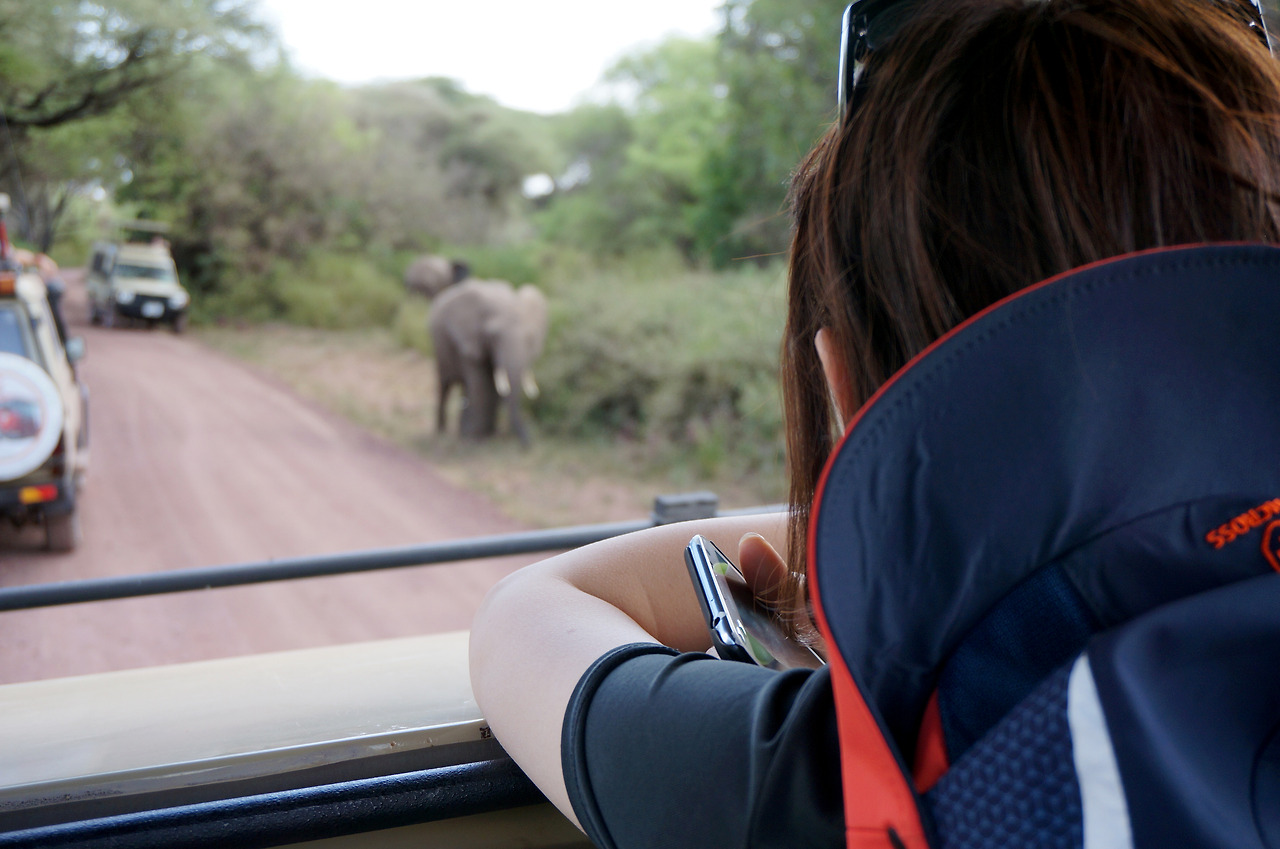 도착한 곳에는 느릿느릿 풀을 뜯는 코끼리 두 마리가 있었다. 무전만으로 도대체 이 넓은 국립공원에서 어떻게 길을 찾는지에 대해 놀라워할 틈도 없이 차는 멈췄고, 이내 시동이 꺼지자 사방이 고요에 잠겼다.
