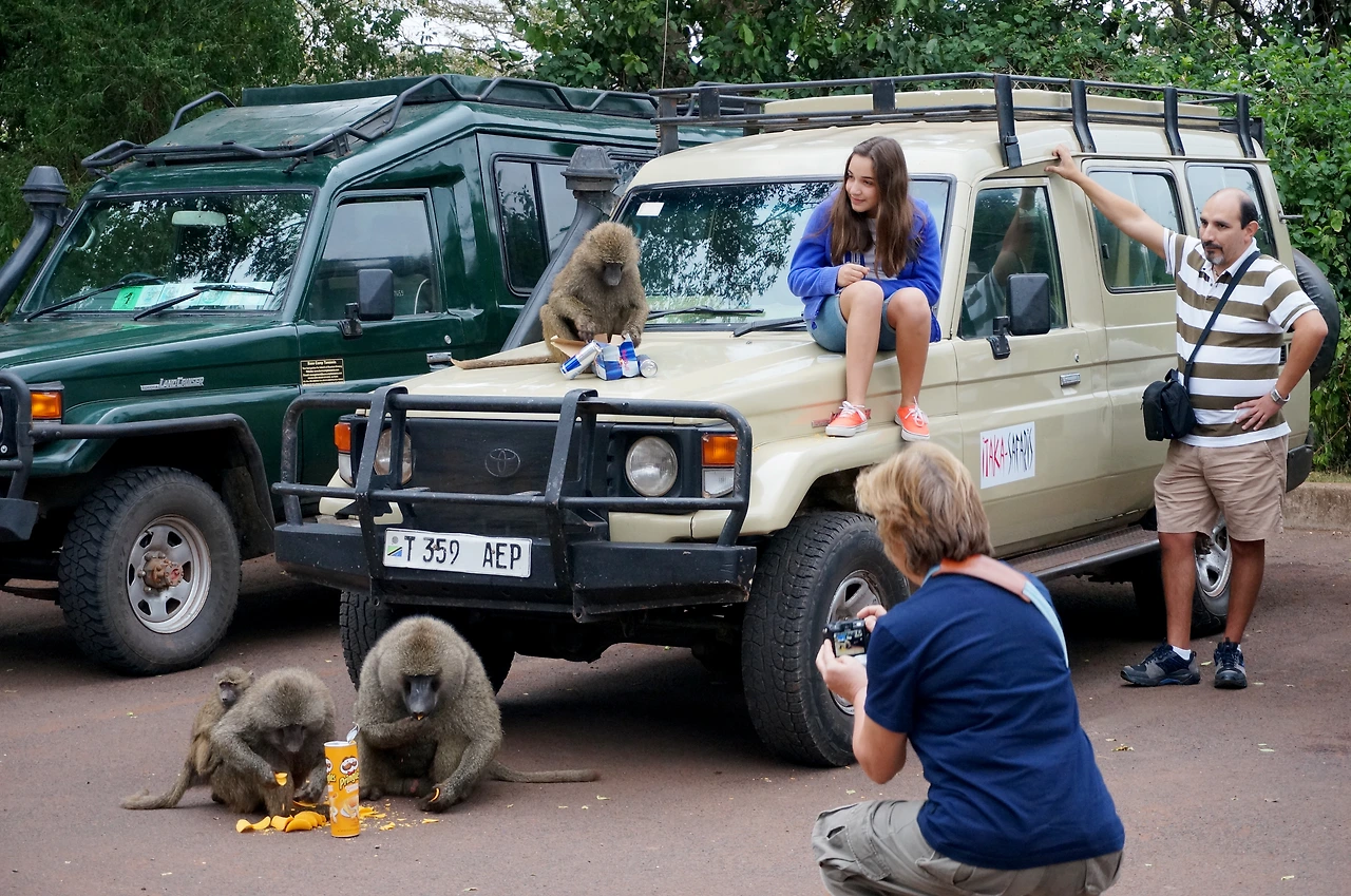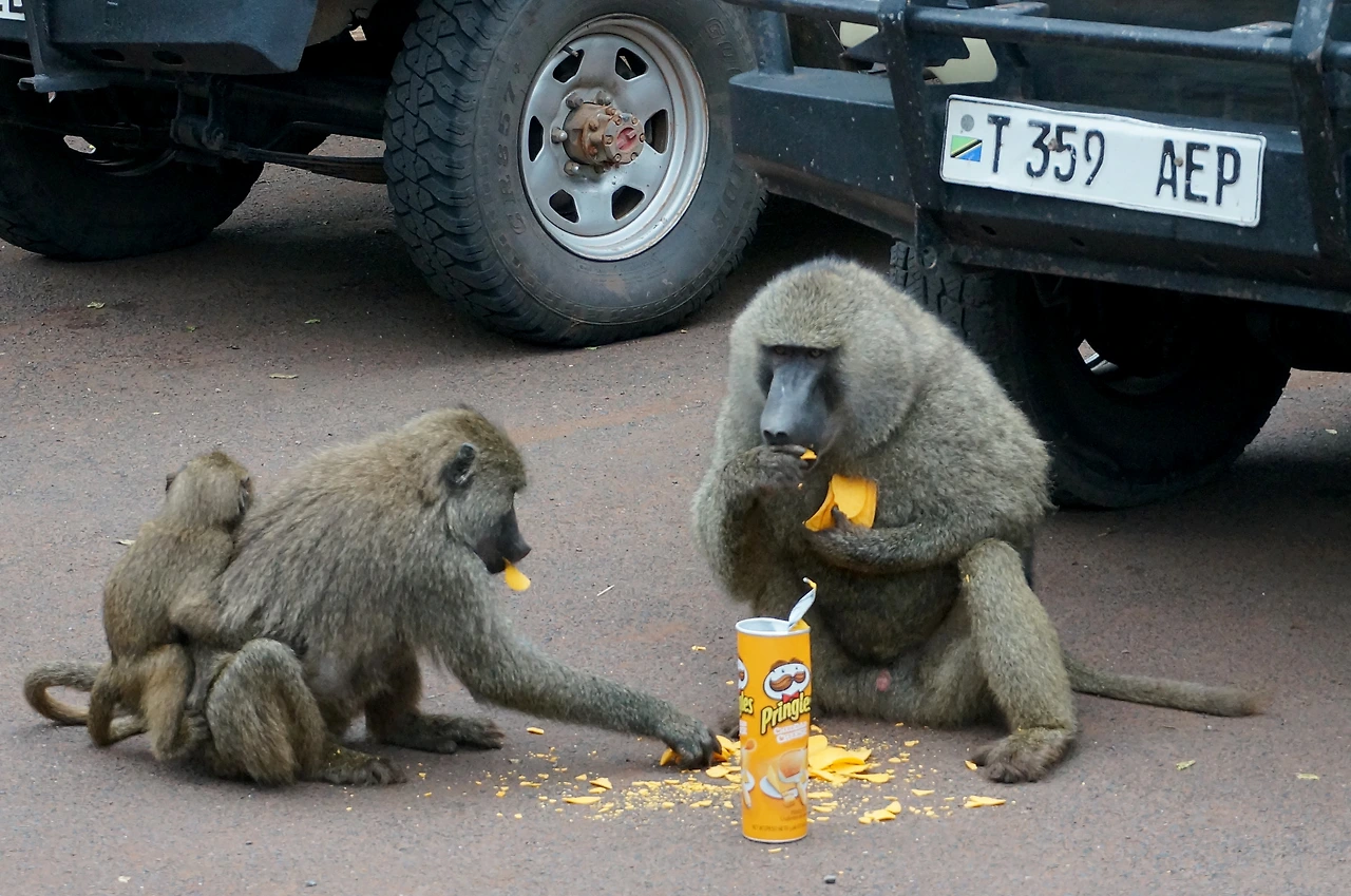 그러던 찰나, 새끼를 업은 바분 한 마리가 어딘가에서 쏜살같이 뛰어오더니 쿵, 쿵, 쿵, 하는 세 번의 도움닫기만에 주차된 랜드 크루져 위로 올라갔다. 눈 깜짝할 새도 아니었다. 녀석은 미처 눈을 깜빡이지도 못하게 빠른 속도로 랜드 크루져 위에 놓인 프링글스를 낚아챘다.