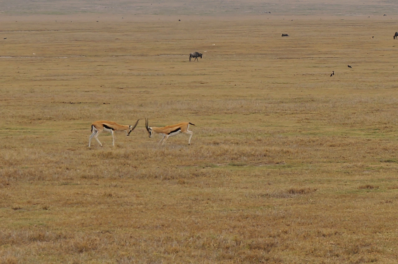그렇지만 봐도 봐도 질리지 않았다. 특히나 톰슨가젤의 싸움을 목격했을 때는 그야말로 흥분의 도가니탕! 조용한 응고롱고로에 뿔끼리 부딪히는 파열음이 울렸다. 초식동물이라고 만만히 볼 것은 아니다. 내 안의 소시민이 문득 되살아나 '얘들아 싸우지 마...'라고 웅얼거렸다.