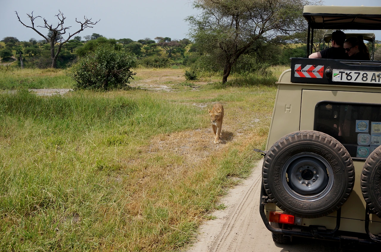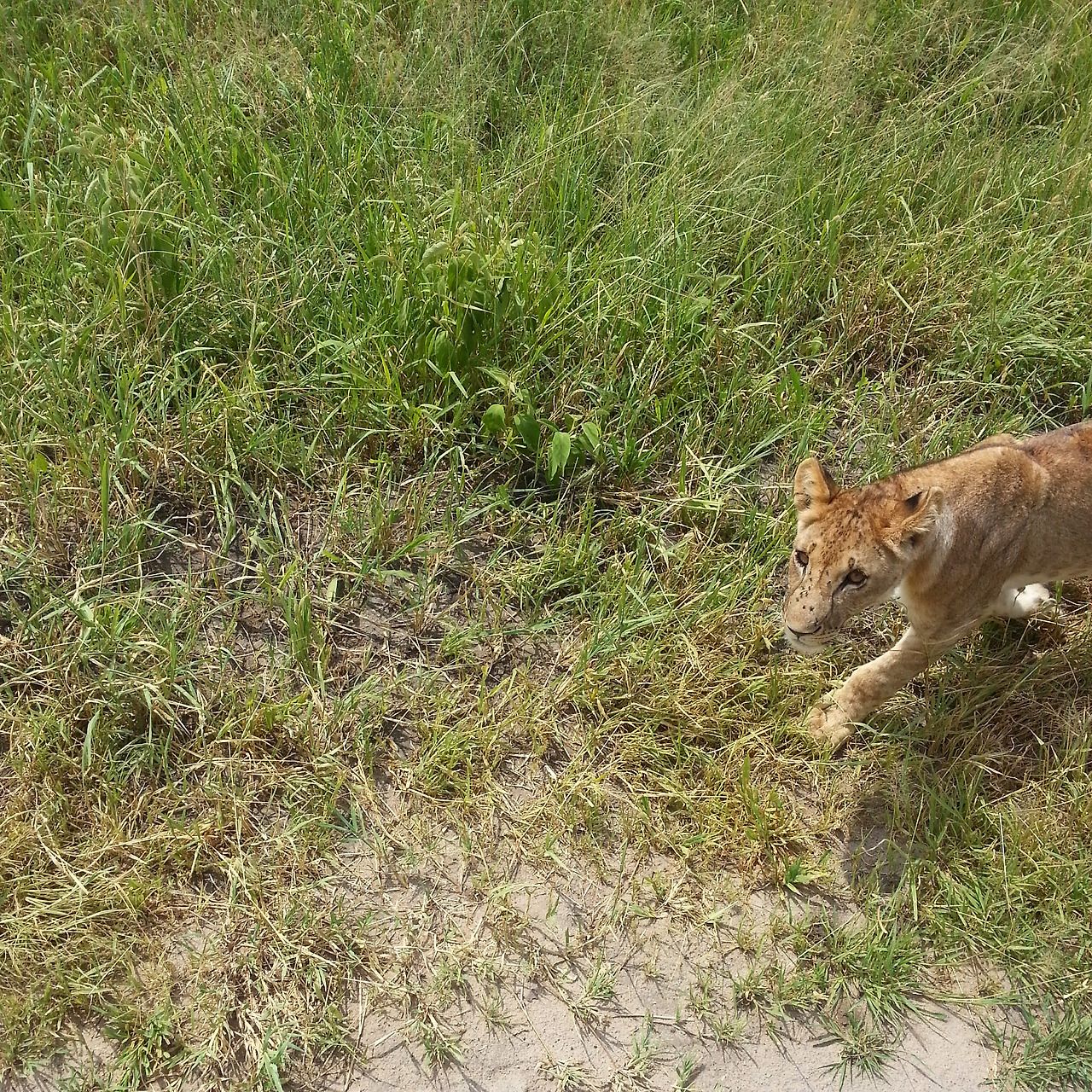 찰리의 무전기가 갑자기 바삐 울리기 시작했다. 다급하게 몇 마디를 나눈 찰리는 설명할 새도 없이 재빨리 차를 움직였다. 애초에 길이랄 것도 없는 곳이긴 했지만 더더욱 길을 무시한 채 빠르게 달렸다. 영문도 모른 채 차에 실려가던 우리는 속도를 늦춘 차 바로 옆을 스치는 암사자를 발견하고는 감탄을 금치 못했다. 손을 뻗으면 닿을 만한 거리였다.