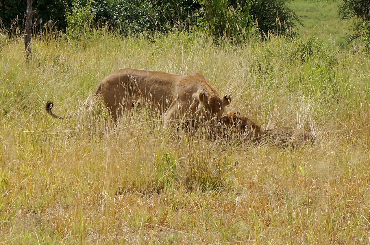 자세히 보니 한 마리가 아니었다. 앗 하는 새 다른 한 마리가 또 스쳐 지나갔다. 두 번째로 나타난 암사자는 한 바퀴를 선회하더니 다시 서서히 방향을 돌려 첫 번째 사자 쪽으로 다가왔다. 자세히 보니 그 가운데에 흑멧돼지 한 마리가 있었다. 사냥이었다.
