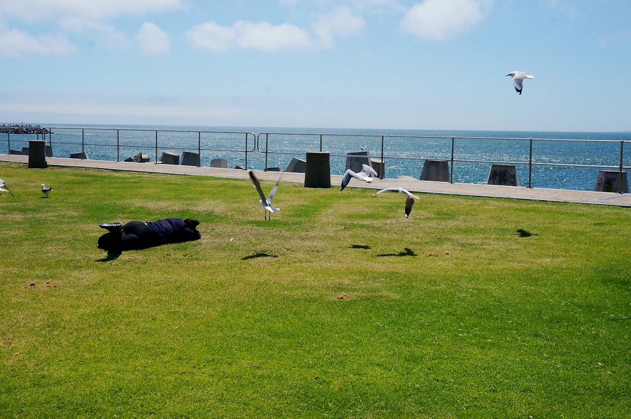 워터프론트를 나오며 사람은 뙤약볕 아래서 자고, 갈매기는 그늘에 앉아서 쉬는 요상한 광경을 목격했다.