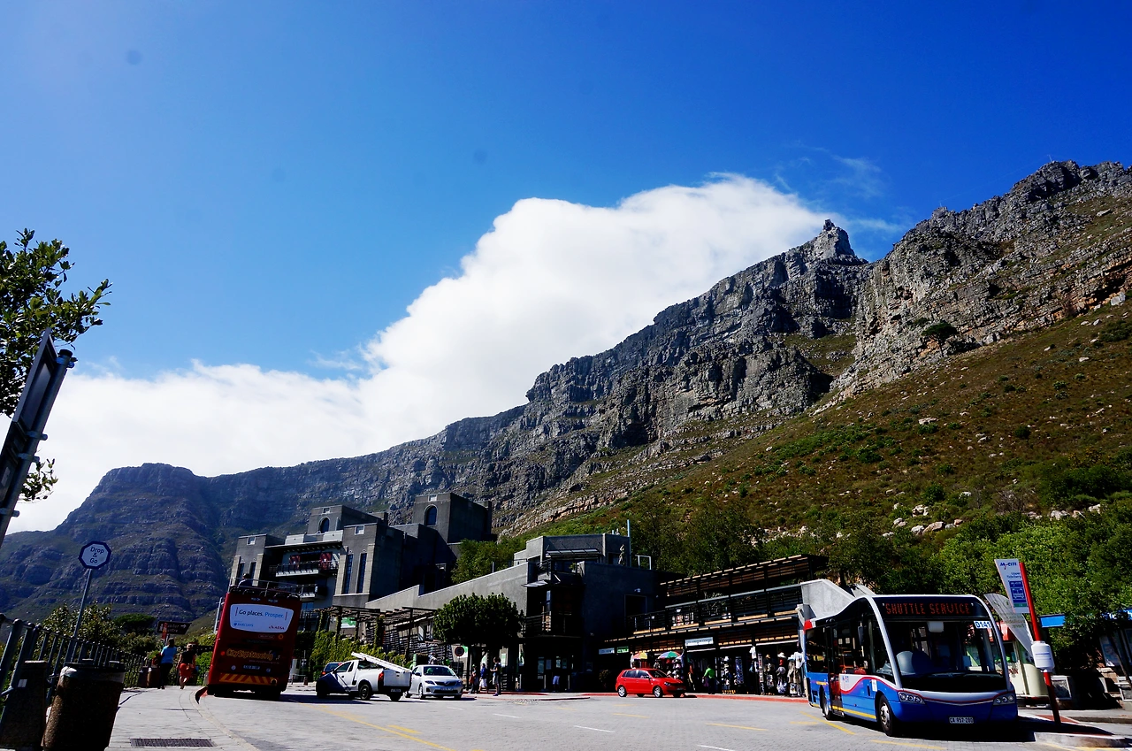 카페인에 의지해 테이블 마운틴으로 향했다. 편평한 윗부분 때문에 테이블 마운틴이라는 이름을 얻은 이 산은 무려 해발 1,086미터로, 높이 때문인지 구름이 지나가지 못하고 걸려있는 자주 모습을 보여준다고 한다. 이 모습은 '테이블보를 덮었다'는 귀여운 표현으로 불리는데 우리가 방문한 날은 어쩐 일인지 테이블보가 걷혀 있었다.