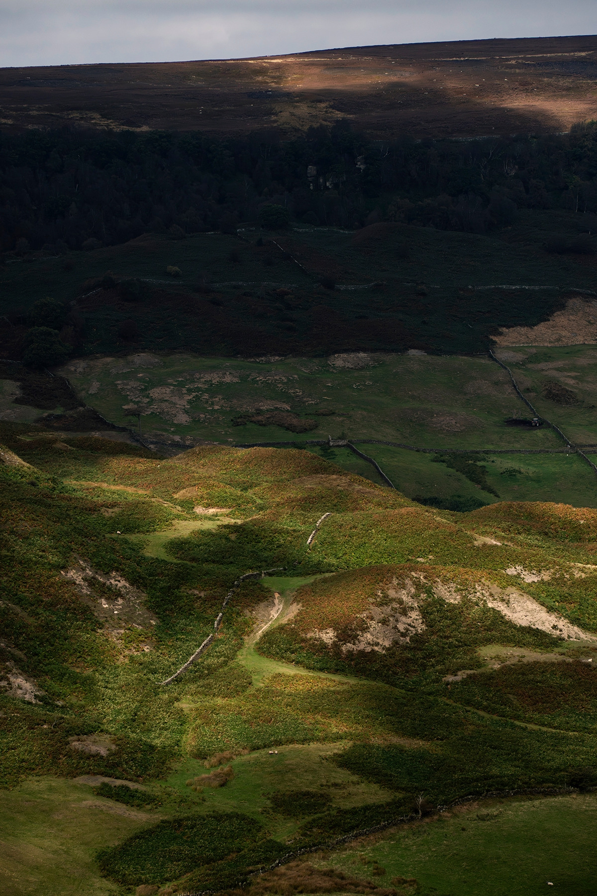 10시, 모래자갈길로 들어선다. 여기부터 글래스데일 무어(Graisdale Moor)가 시작된다. 길 양쪽으론 헤더와 풀떼기가 널따랗게 흐르고 있었다. 아뵤아뵤 꿩들이 솟아 날았다. 양들은 내 맘도 모르고 자꾸만 멀리멀리 도망을 갔다. 능선을 따라 넘어가는 이 길이 한눈에도 상당히 길게 이어져 있었다. 저 아래의 마을과 곁으로 흐르는 언덕, 들판 곳곳에 내린 햇빛의 얼룩이 모두 아름다웠다.
