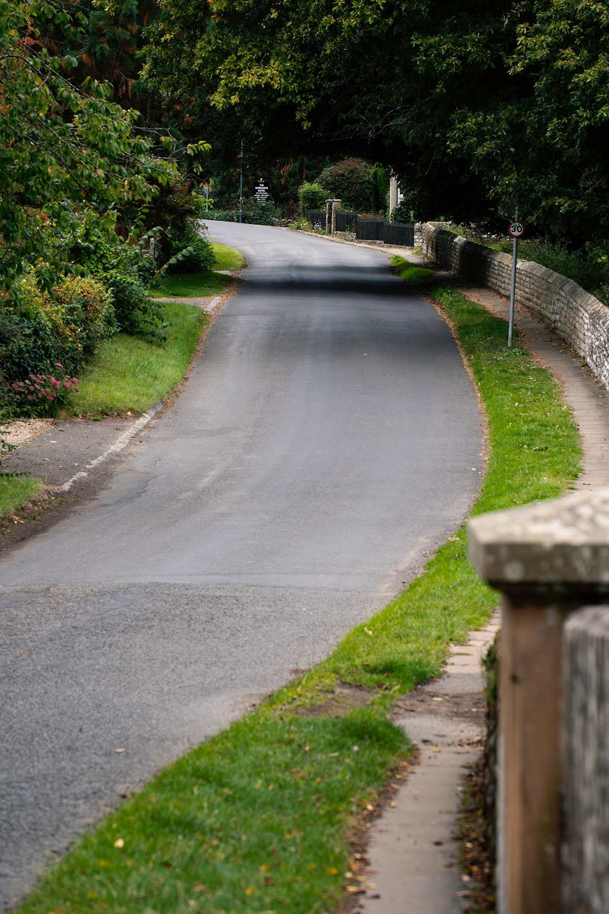 마을 길을 따르다 안클리프 암스 카페(Arncliffe Arms Cafe) 옆 샛길로 빠져 숲으로 들었다. ‘Esk Valley Walk’라고 표기된 길을 따라 걸었다. 오르막과 내리막이 계속 반복되는 구간이라 힘이 들었다. 땀이 많이 났다. 1시 조금 지나 그 숲에서 나왔다. 차가 거의 지나가지 않는 도로를 얼마간 걸었다. 어느새 햇빛은 사라지고 날씨는 완전히 흐려졌다. 상당히 습해 기분이 나쁠 정도였다. 외진 어느 호텔을 지나 애그턴 다리(Egton Bridge)를 건넜다. 오늘의 종착지 그로스몬트(Grosmont)까지는 3.7km 정도 남았다.