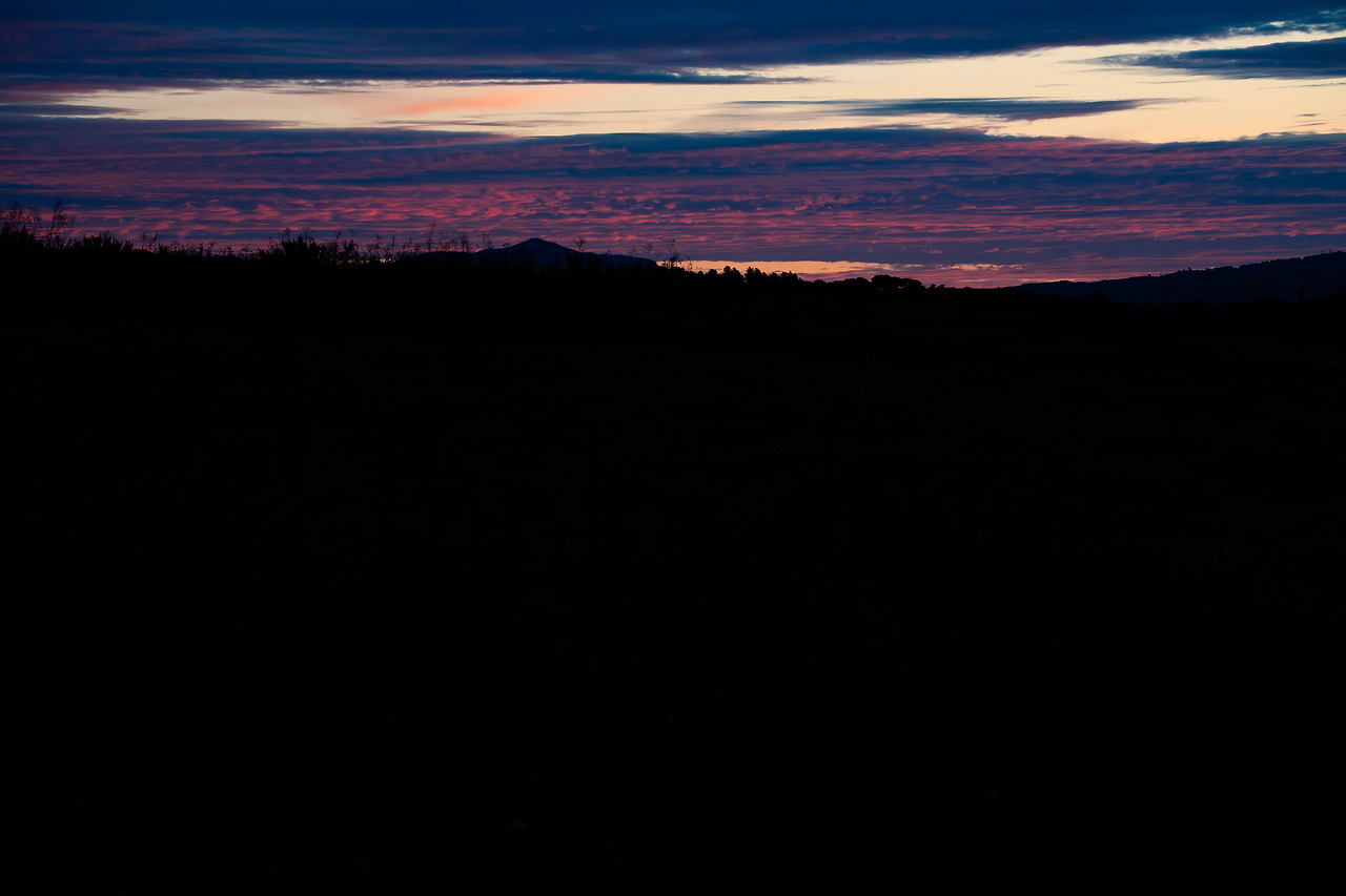 자동차 소리가 간간이 들려왔다. 엉뚱한 숲길로 들어 약간 헤매기도 했다. 어제부터 길 너머 먼발치로 내내 보였던 납작한 절벽은 한층 더 가까워져 있었다. 7시 반쯤이 되자 어스름이 오르기 시작했다. 점차 헤드랜턴이 없어도 길을 분간할 수 있게 됐다. 하늘이 서서히 밝게 번진다. 분홍이었다가 주홍으로, 마치 노을 같은 여명이었다.