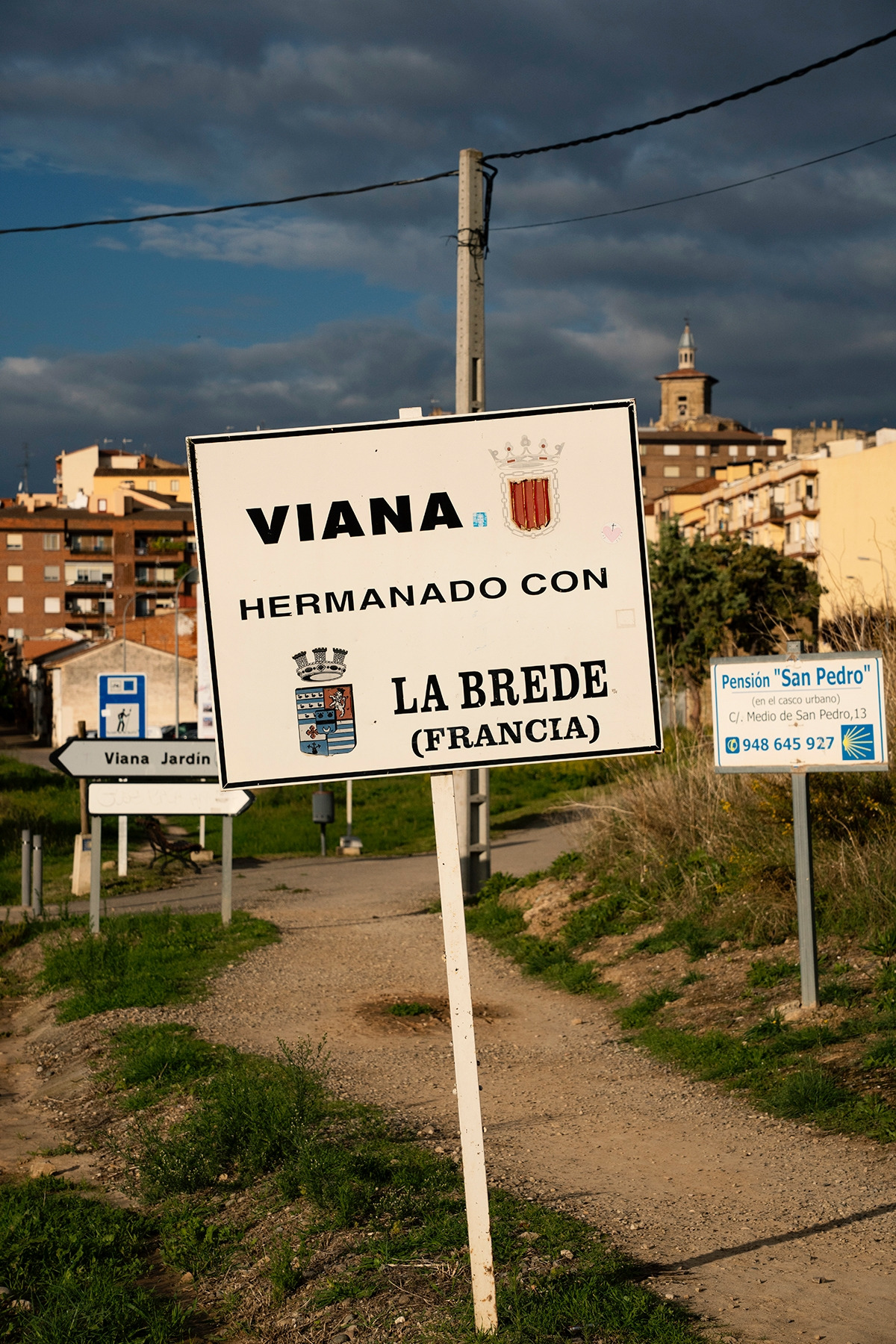 밭과 언덕을 지난다. 특히 자갈길이 많았다. 아침을 맞은 새들이 재잘거리며 노래했다. 오늘도 하늘은 파랬다. 8시 40분, 산을 넘긴 태양이 시선 위로 떠오르기 시작했다. 언덕을 올라 도로로 나오자 앞서 걷는 사람들이 멀리 보였다. 먼발치에 웬 마을도 있었다. 어제부터 보인 저기 저 바위 산엔 벌써부터 눈이 쌓였다. 도로를 한동안 따라 걸었다. 오가는 차들은 거의 없었다. 앞서 본 마을의 이름은 Viana였다. 토레스 델 리오와 로그로뇨(Logroño) 사이의 유일한 마을이었다. 저기서 뭐라도 먹어야지 안 되겠다. 꼬르륵 무척이나 배가 고팠다.