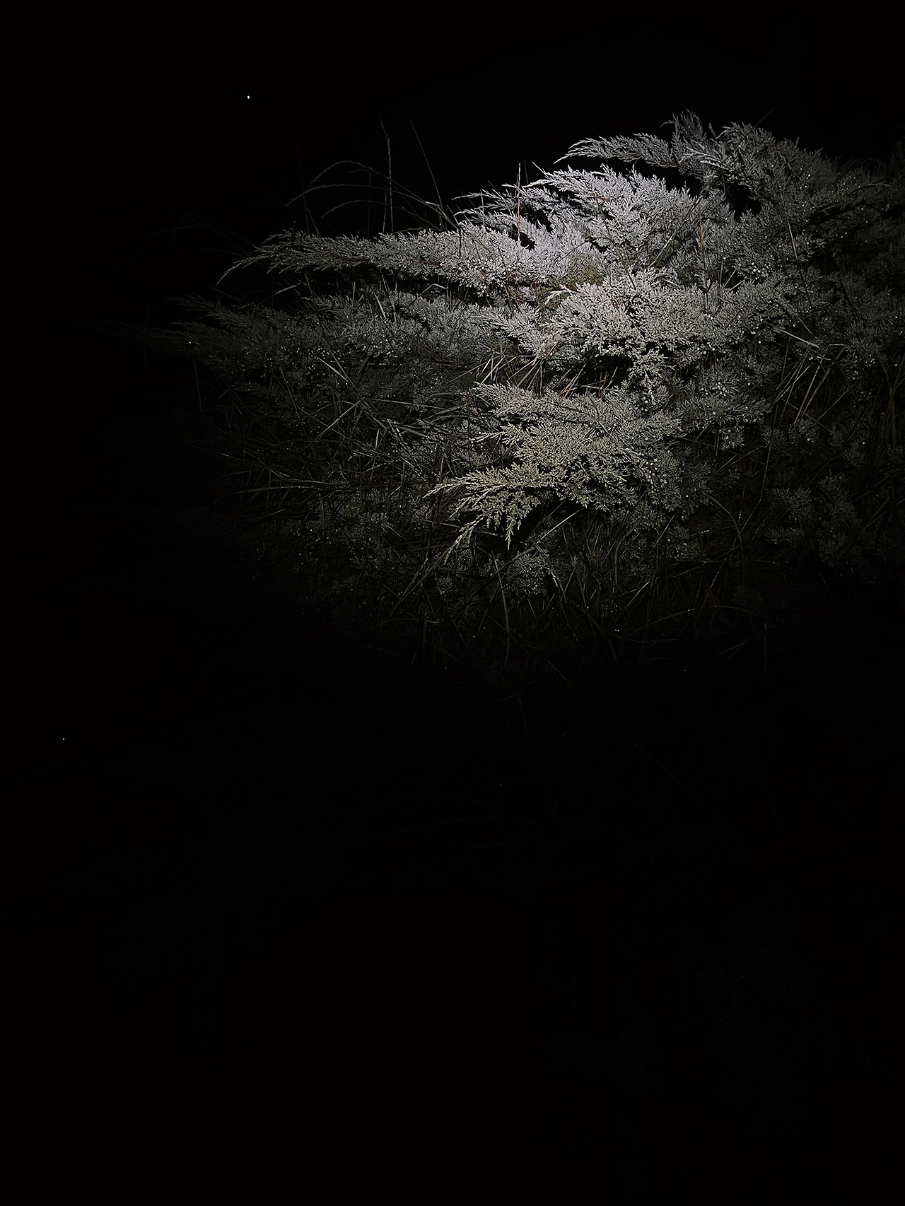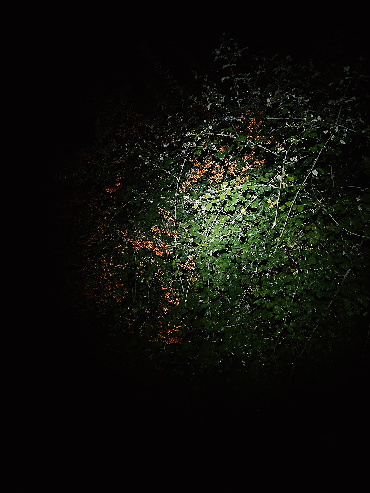 암흑의 물빛. 매한가지의 어둠인데, 하늘과는 구분되는 희미한 수면의 반사가 있었다. 지역의 생활용수로 쓰이는 그라헤라 저수지(Embalse de la Grajera)였다. 가장자리를 따라 난 공원 산책로를 걸었다. 바스락바스락, 수풀에서 난데없이 튀어나온 토끼들이 눈빛을 반짝였다. 나무에 달린 주홍빛 열매들은 어둠 속에서도 예뻤다. 이슬 맺힌 흰 풀잎들이 걸음에 맞춰 팔락거렸다. 머리를 돌려 랜턴 빛이 닿을 때마다, 없었던 풍경이 선명히 드러났다.