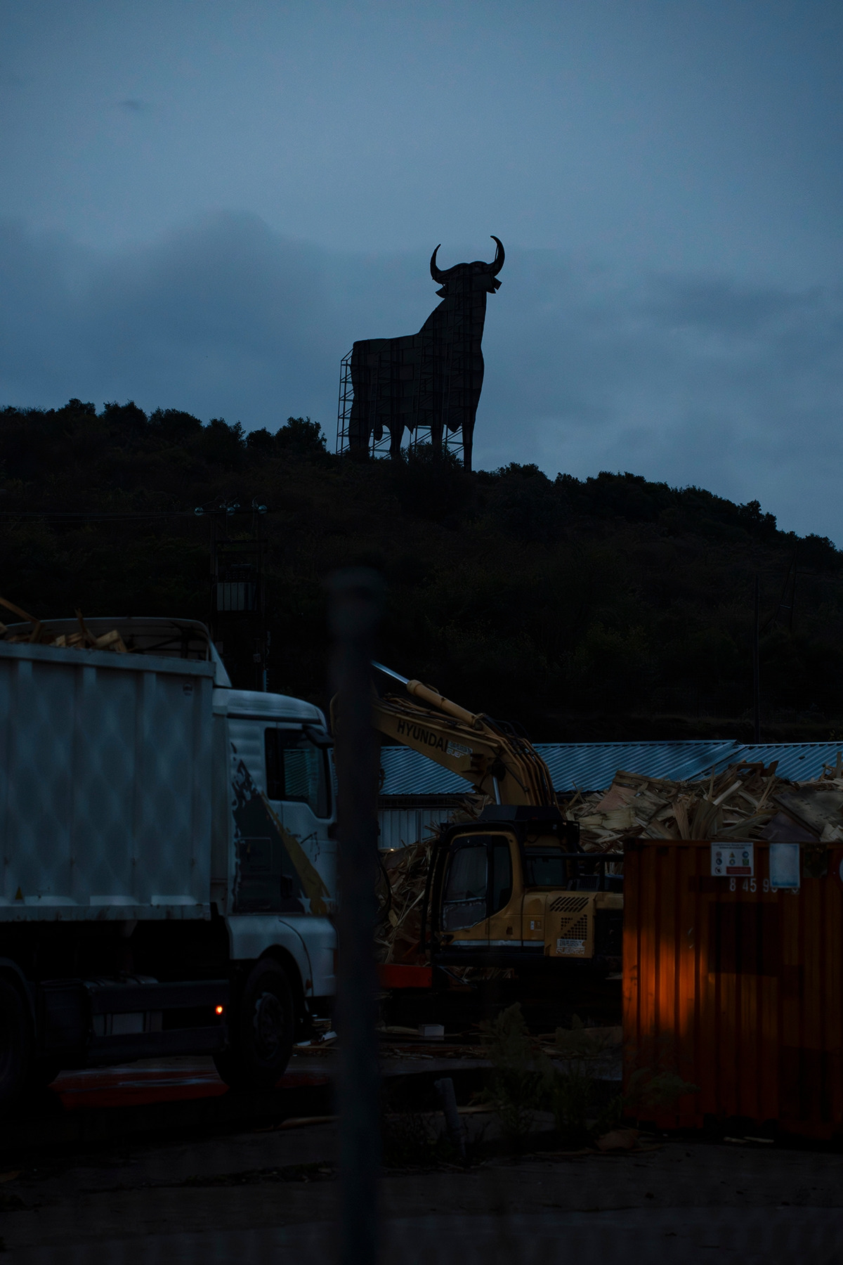 포도밭과 도로 사이의 길. 월요일이라 그런지 도로가 복잡해 보였다. 꽃들이 화사하게 배웅을 해준다. 멀리서부터 웬 황소 실루엣이 보였다. Osborne이라는 술 브랜드가 광고를 위해 세운 그 황소 간판은 스페인다운 랜드마크로 여겨져 지금은 문화적 아이콘으로까지 받아들여진다고 했다. 스산한 그 길을 통과해, 공사현장과 고가도로를 차례로 지났다. 잔뜩 흐린 하늘이라 별다른 일출은 없었다. 살짝 걸린 분홍빛 구름만이 아침을 겨우 티 낼 뿐이었다.