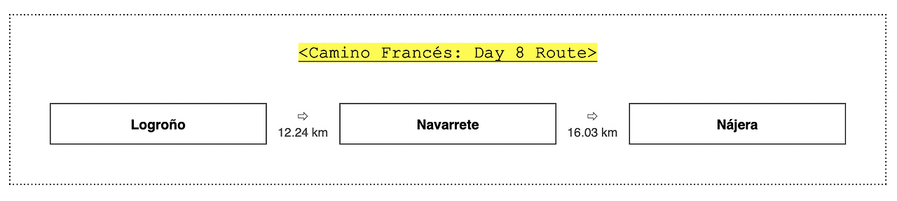 9시 45분, 예상보다 빨리 나바레테에 도착했다. 길을 올라 둥그렇게 마을을 통과한다. 여기서 아침이라도 먹을까 했는데 문 연 빵집은 하나도 없었다. 그리 크지 않은 동네가 조밀하게 모여있었다. 독일 형아는 어제 여기에 묵었겠지. 그가 말했던 맛 좋은 레스토랑이 어디일까 추측을 해봤지만, 마땅한 단서를 찾기란 거의 불가능에 가까웠다. 적당한 벤치에 앉아 잠시 쉬어간다. 빵 없는 아쉬움을 오래된 초코바로 달랬다. 슬슬 걷는 이들이 길 위에 많이 보이기 시작했다. 벌써 12km 정도를 걸어왔다. 와... 정말 부지런히도 발을 놀렸다.