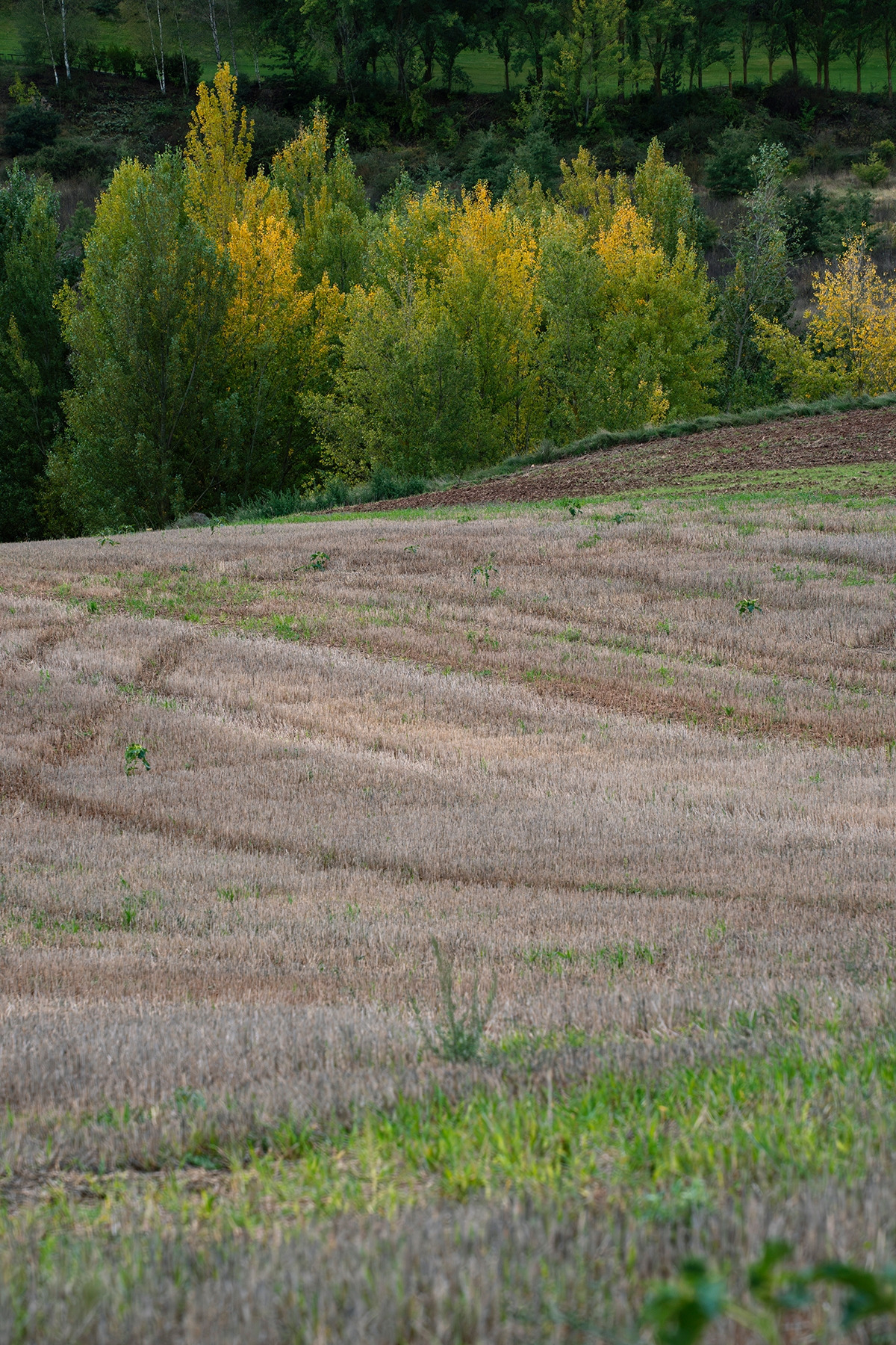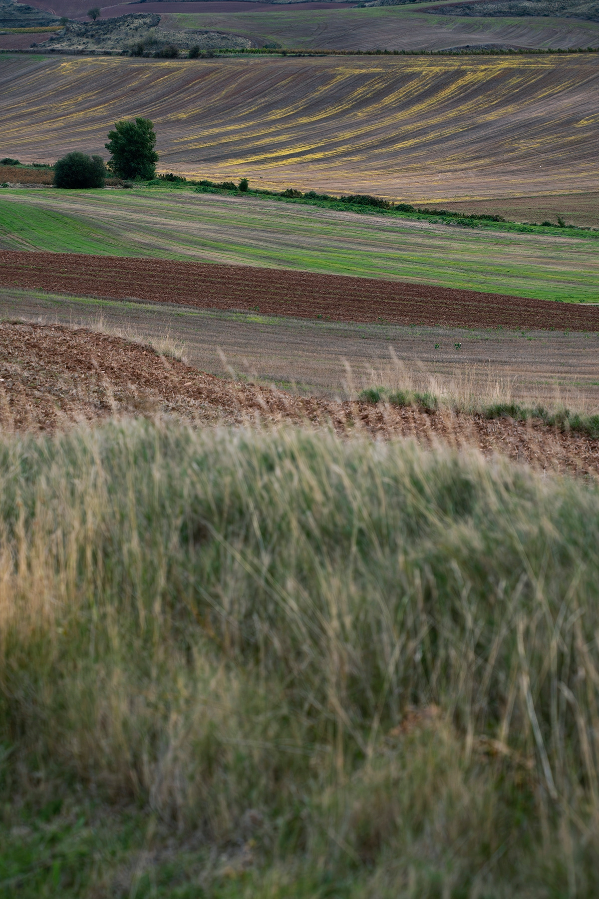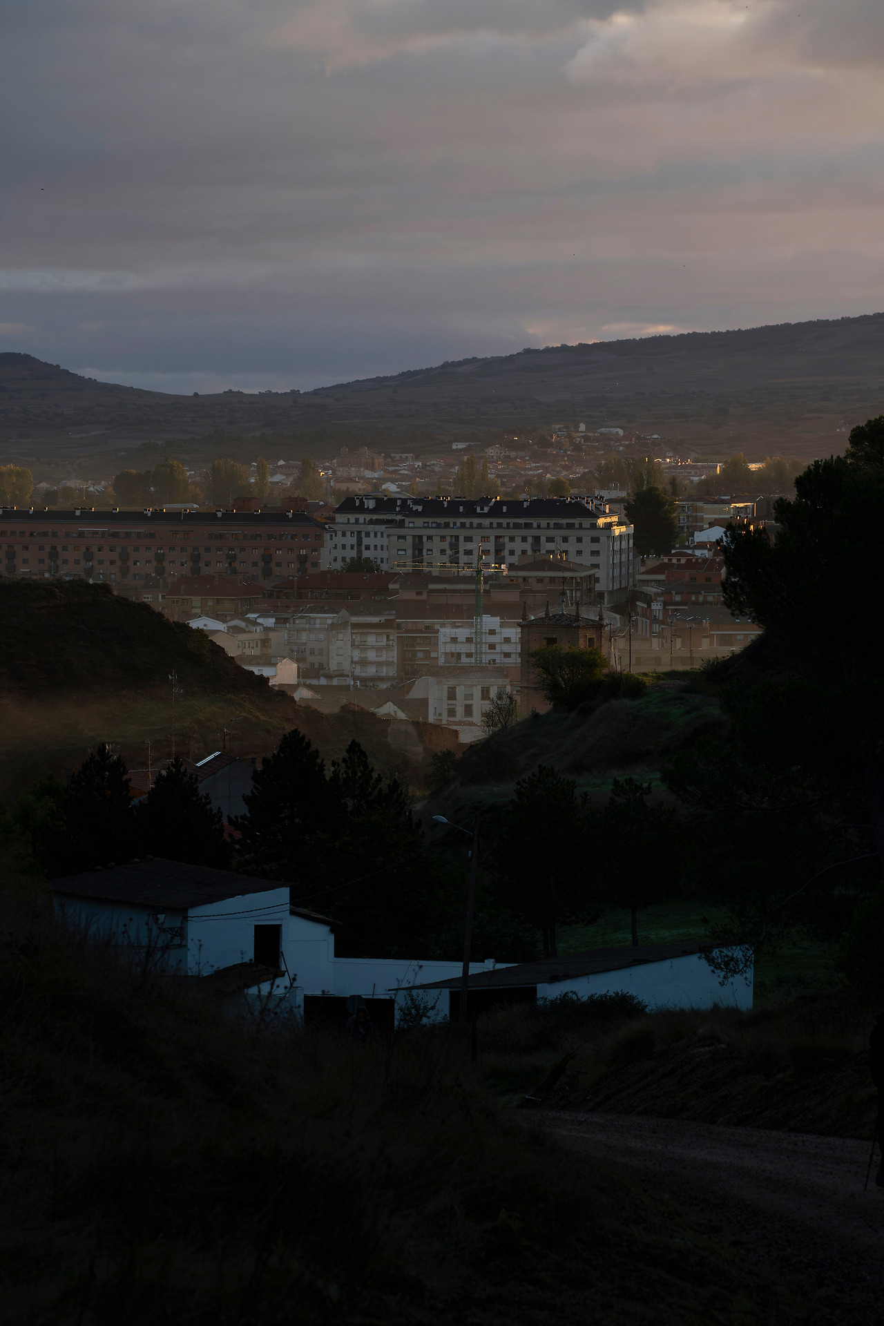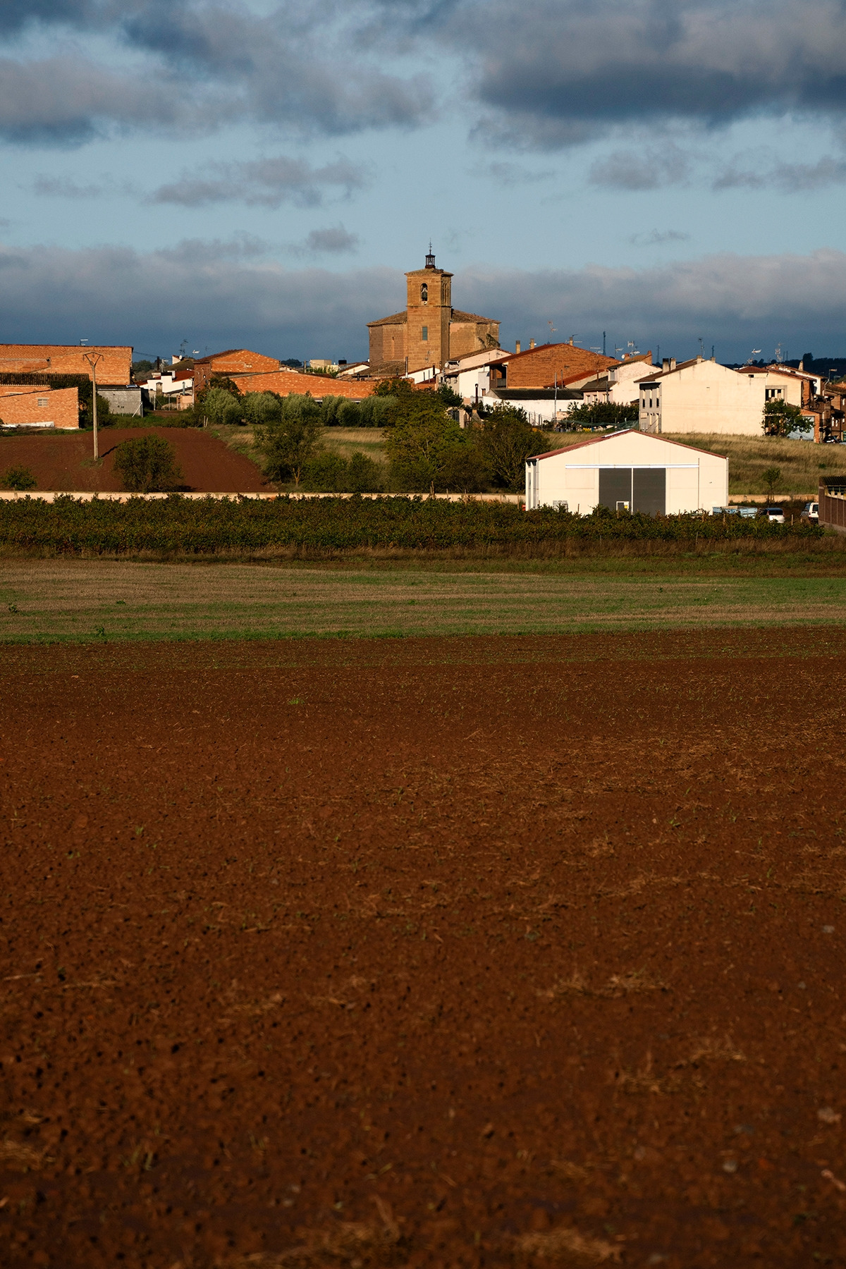 마을을 벗어나며 12시 종소리를 들었다. 주변의 건물이 싹 사라지자, 한가닥의 길은 앙상한 밭 사이로 굴곡지며 나아가기 시작했다. 하늘과 멀지만 또 가까웠다. 낮으나 사방이 틔여 높이 오른 기분이 들었다. 여기가 아마도 오늘 길의 하이라이트. '산티아고순례길'하면 흔히 떠오르는 낭만적 분위기가 길 위로 흘렀다. 지저귀는 새소리가 반갑다. 봄이나 여름이었으면 완전히 달랐을 풍경, 이 가을엔 황량한 아늑함이 있었다. 주변의 산세가 어우러져 아름다웠다. 유연한 곡선을 타고 천천한 길을 따라 가자, 멀리 저 멀리 산토도밍고가 서서히 보이기 시작했다.