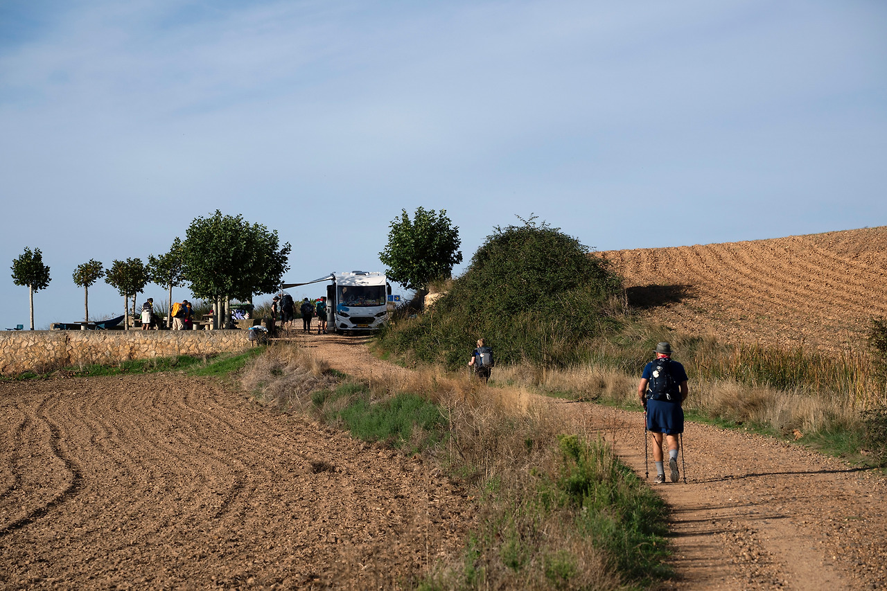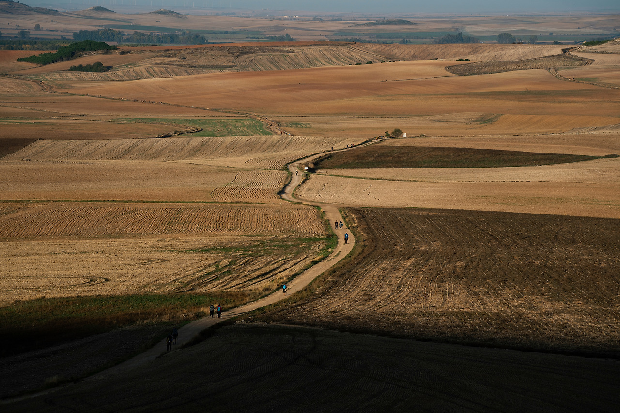 마을을 빠져나오자 8시 종소리가 뒤따라왔다. 카스트로헤리스(Castrojeriz)에 이토록 많은 순례자들이 묵고 있었던가, 비슷한 시간에 걷기 시작한 사람들이 참 많았다. 마치 라디오를 켜놓은 듯한 대화소리가 뒤로부터 들려왔다 앞으로 사라지길 반복했다. 날이 점차 밝아온다. 눈앞에 낮고 넓게 펼쳐진 구릉이 오르막으로 길을 인도하고 있었다.