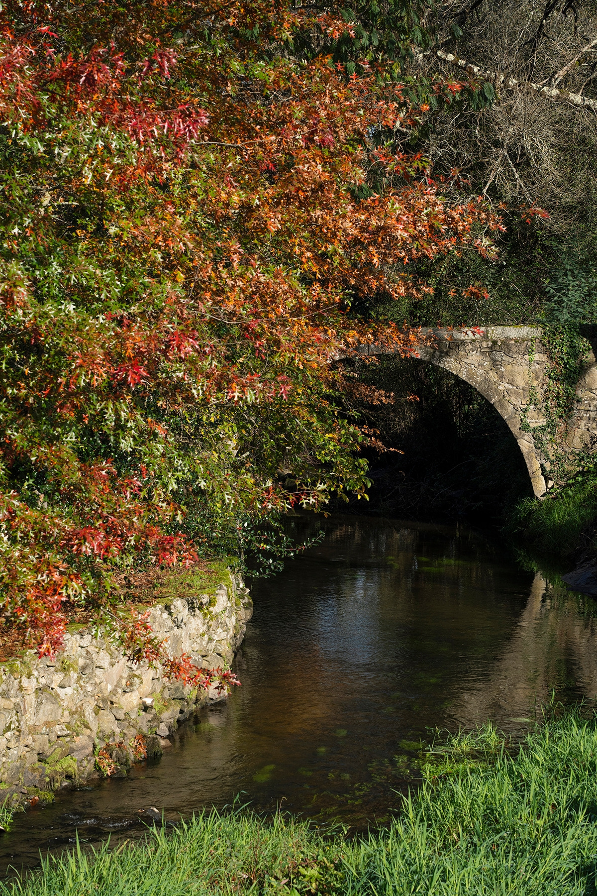성곽을 내려가며 마을을 벗어나는 길이, 재밌다. 잔디밭과 유적을 거쳐 어두운 굴을 통과해 아래로 아래로 내린다. 도로가 나왔고, 곧 긴 철제 교량이 있었다. 그 너머로 오늘의 목적지 뚜이(Tui)가 멋들어지게 자리 잡고 있었다. 너른 강이 멈춘 듯 흘렀다. 교차가 안 되는 좁은 교량을 차들이 때에 맞춰 번갈았다. 위로난 철로로는 다행이랄지 기차가 지나가지 않았다. 차가운 다리를 걷는다. 국경의 강을 건넜다.