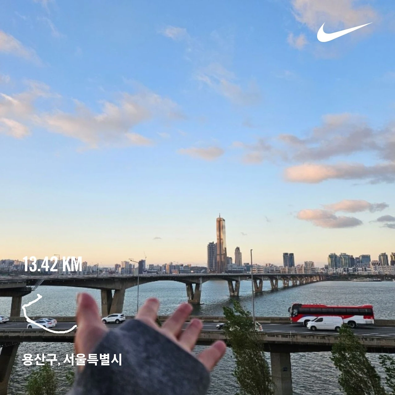 한강의 바람이 꽤나 불기도 했지만, 대체로 해가 뜨는 시간이라서 크게 춥진 않았고 몸은 금방 뜨거워진 것 같았다. 얼굴을 너무 잘 타는 나라서 마스크를 썼지만, 바로 버렸다. 일단 뛰는데 집중하자. 그 외 것은 지금 신경쓸 수 없다.