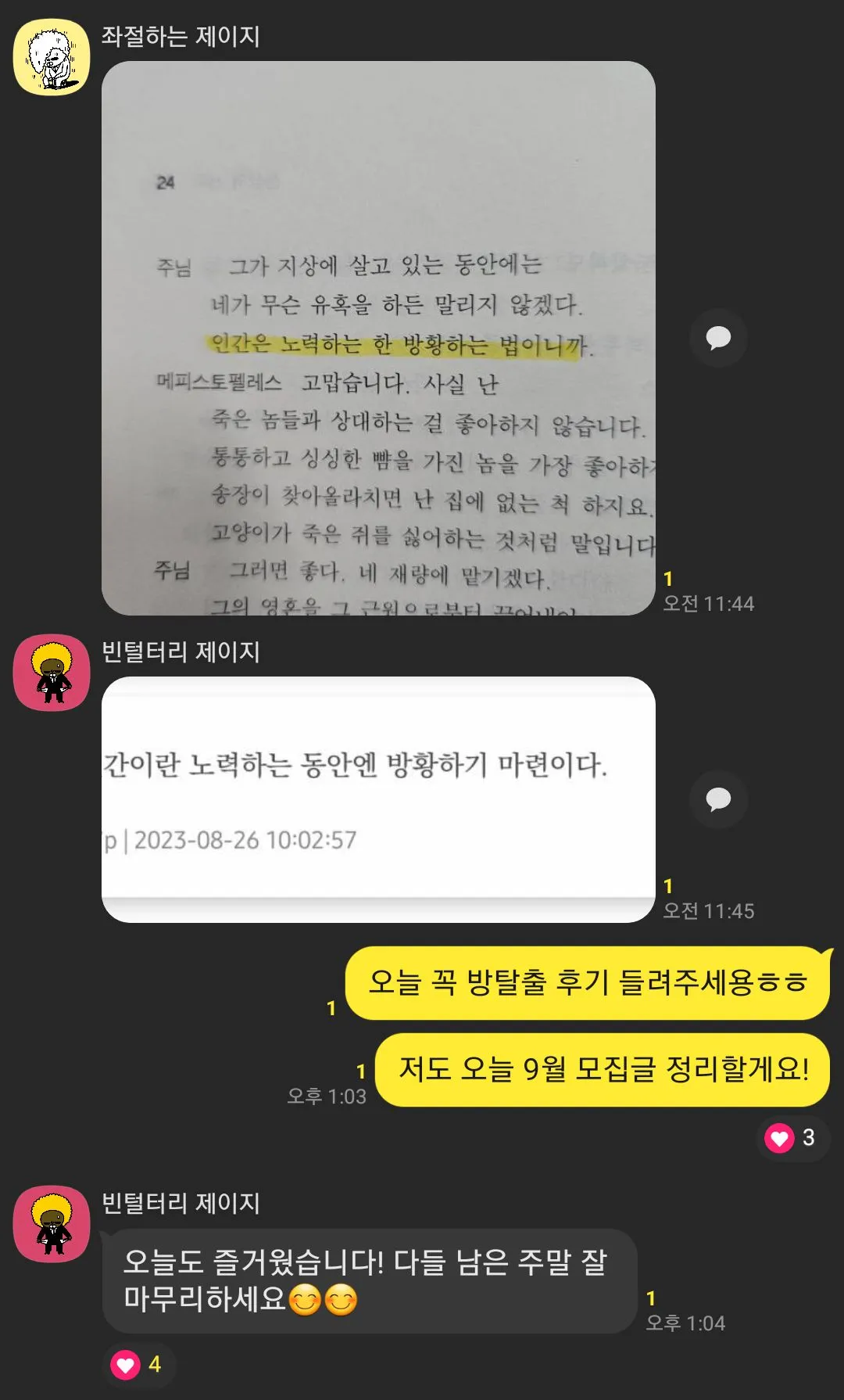 결론적으로 다시 제목이자 질문으로 돌아가서 5년 동안 독서모임을 운영하는 이유가 있나요? 라고 물어본다면, 나는 '그냥 좋아서 한다.'라고 답하고 있다.