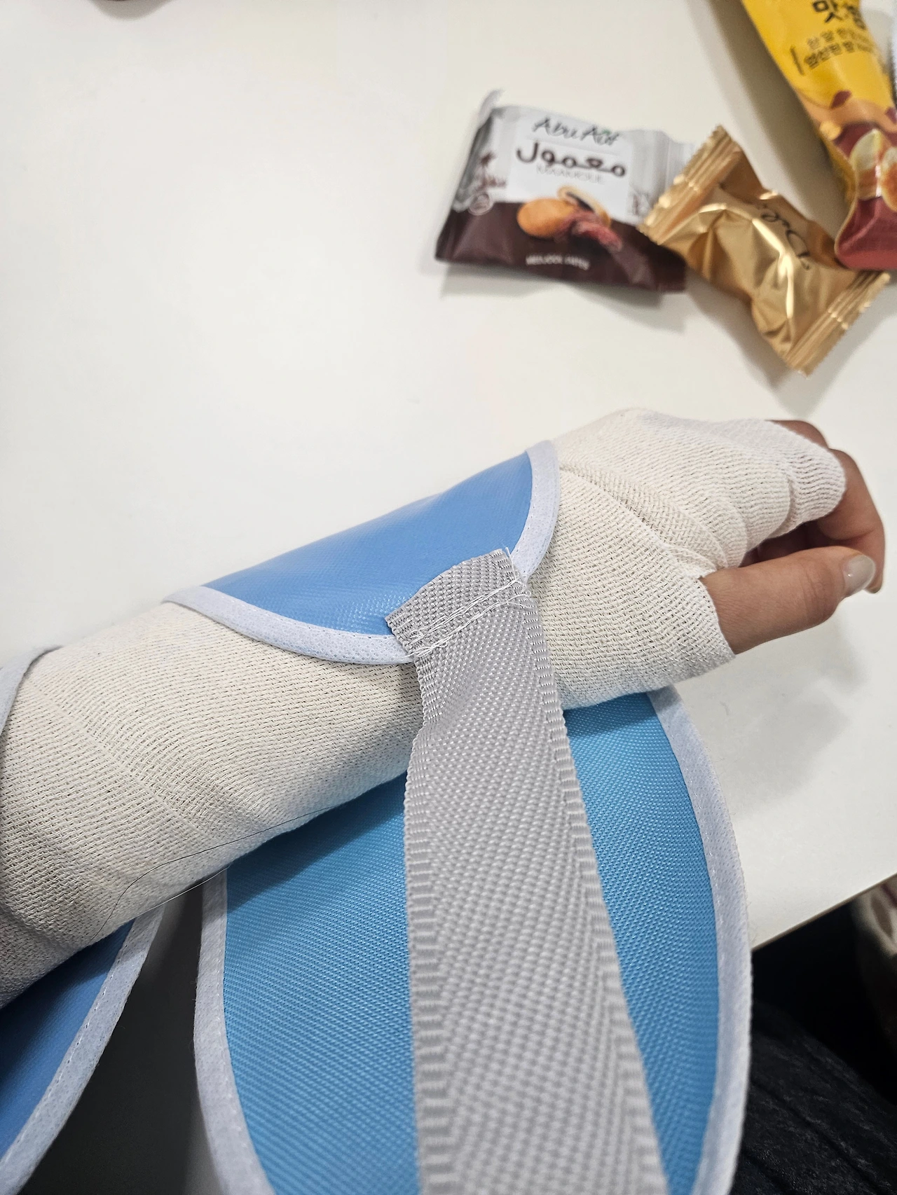 3월 한 달 좀 넘게 크로스핏을 중단했었다. 그래서 발리 다녀와서 충분히 쉬었고 살도 올랐으니 이제 운동 가야지 싶었는데 아니 이게 왠 걸, 가자마자 바로 철봉에서 떨어져서 4월 한 달 꼬박 깁스를 하고 살았다...어쩌면 움직임이 편치 않으니 가장 평온 할 수 밖에 없었던걸까 싶기도 한데, 나름 적당히 잘 즐겼던 것 같다. 첫 날 떨어지고 센터에서 굳이 굳이 병원에 가라고 하셔서 갔는데, 별 이상 없대서 신나서 집에 왔었다. 그런데 다음날 나는 출근했다가 아래사진 처럼 붓고, 검매진 손을 부여잡고 너무 너무 너무 아파서 다시 병원에 갔다가 뼈에 금갔다는 걸 알게되었다..^____^ 덕분에 mri 도 처음 찍어보고 스스로 아주 잘(?)했다는 생각에 억울할 수도 없었다...^___^