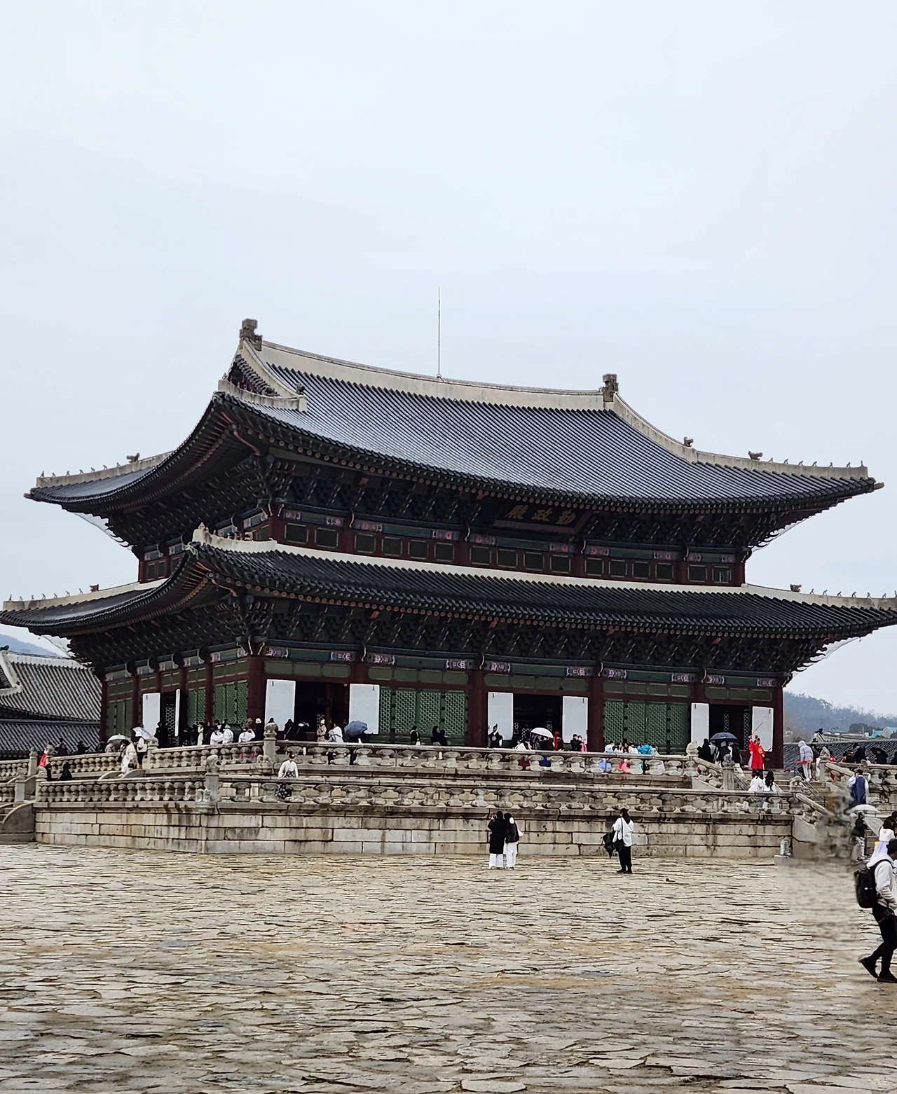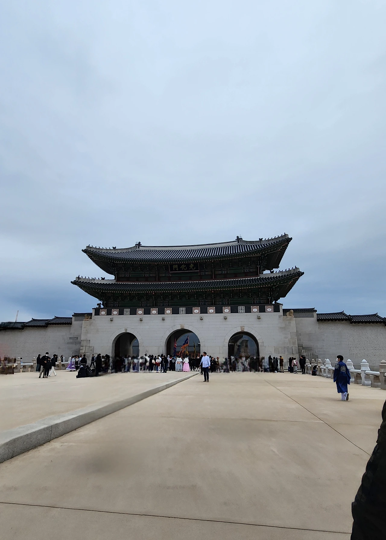3일이었는데 삼일 내내 날씨가 좋지 않았다. 게다가 첫날은 분명 저녁에 비가 온다고 했고 일기예보를 철석같이 믿었던 우리는 챙겨갔던 삼단 우산도 숙소에 그대로 두고 룰루랄라 신나게 경복궁으로 왔는데