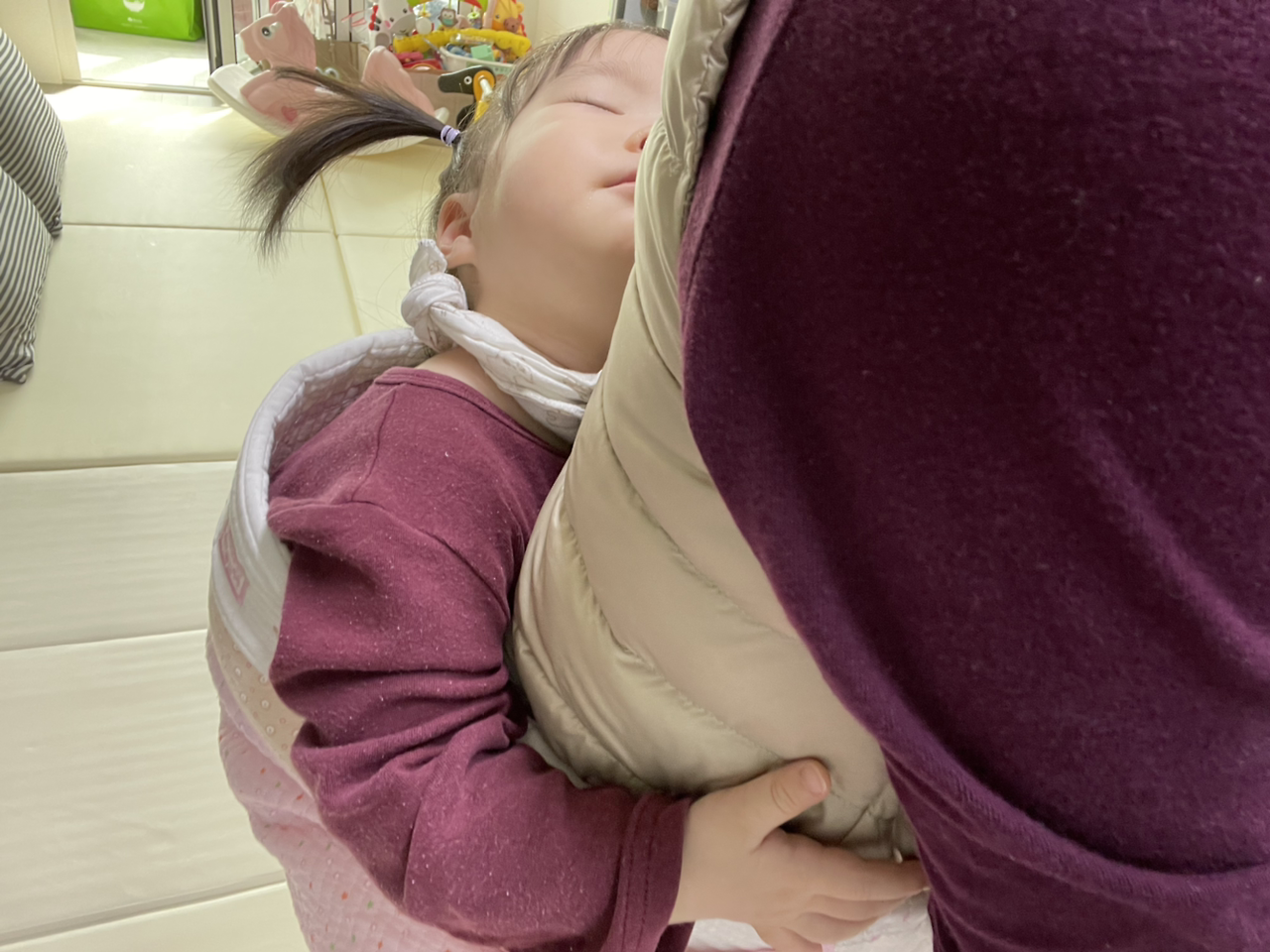 아이를 업고 집안일을 하다 잠시 돌아보니 이렇게 귀엽게 잠들어있었다. 이 작고 귀여운 생명체 너무 소중하고 소중해. 엄마 허리가 아프긴하지만 너의 귀여움에 심장이 너무 아파 ㅎ