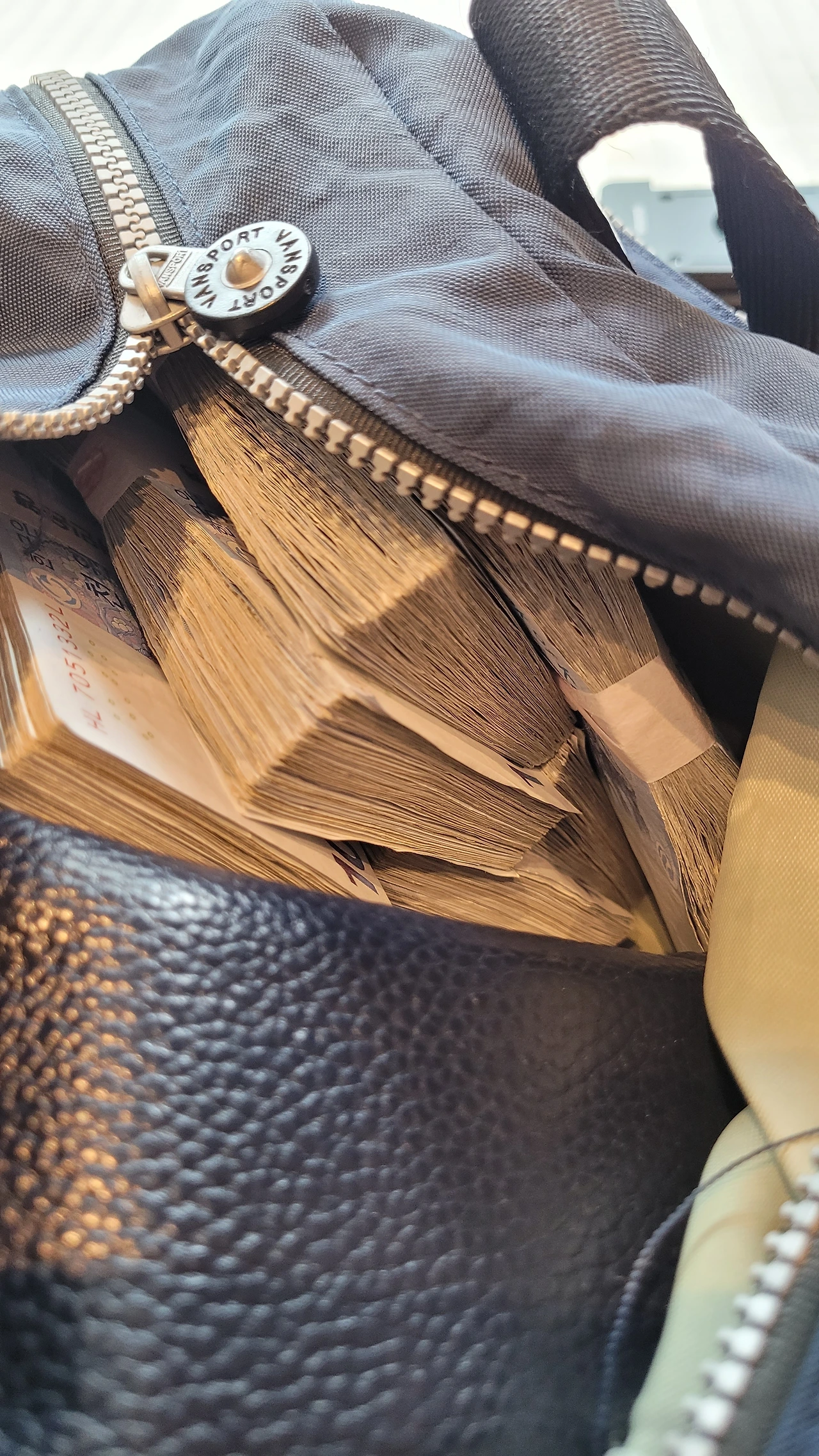 우와.... 돈다발이 여섯 개나 가방에 꽉 차 있으니