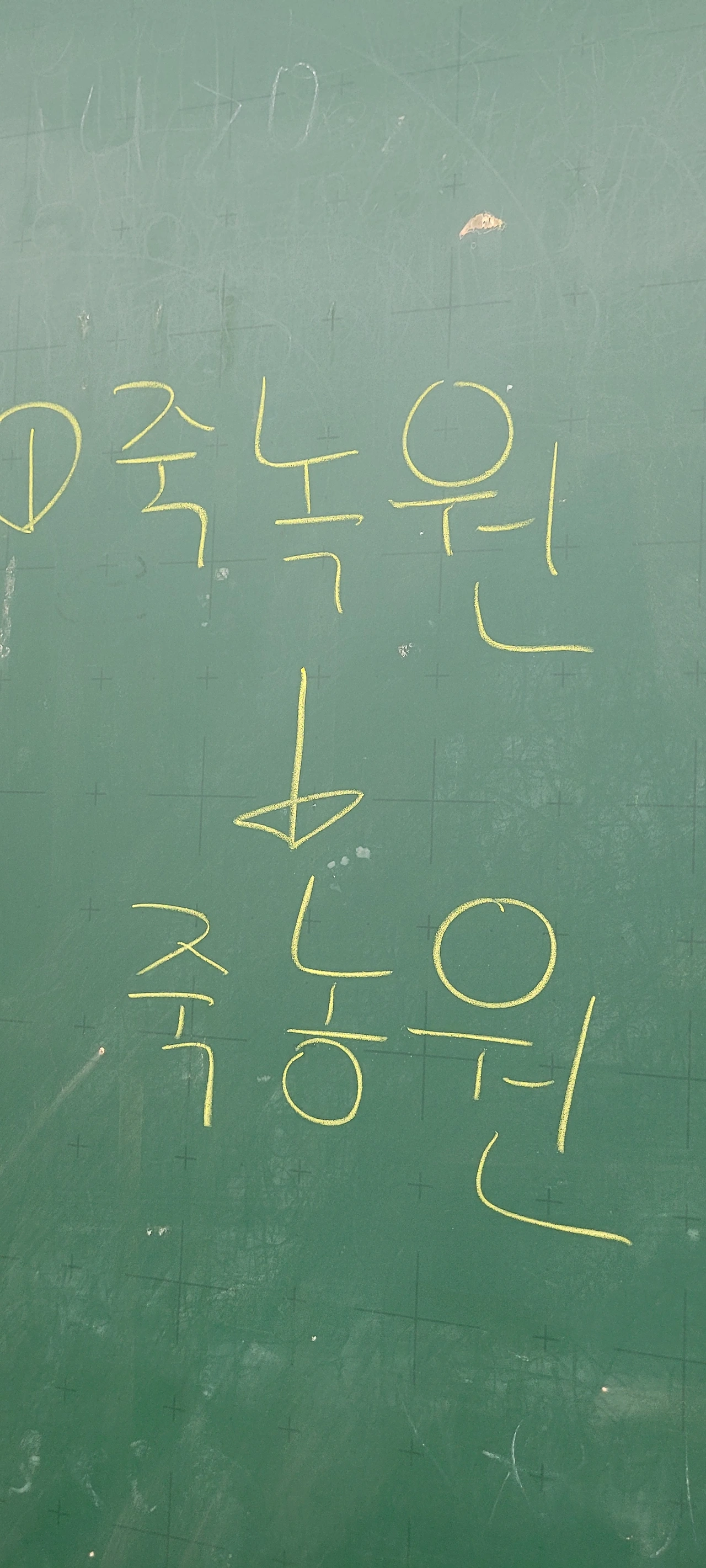 이 학생의 '한나산'은 참으로 청량하여 수업 분위기를 아주 맑고 즐겁게 해주었다. 이렇게 틀려 주는 학생이 있어야 나머지 학생도 왜 틀렸는지 배울 수 있어서 좋다. 실컷 웃고 서로 자기 답이 맞다며 참견을 했었기에 더 잘 기억할 거다. 이 예문을.