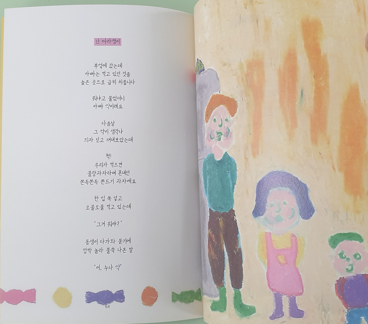 이 책은 박효신 작가가 그림을 그렸고, 박효신 작가의 엄마인 조계향 작가가 시를 쓴 동시집이다.