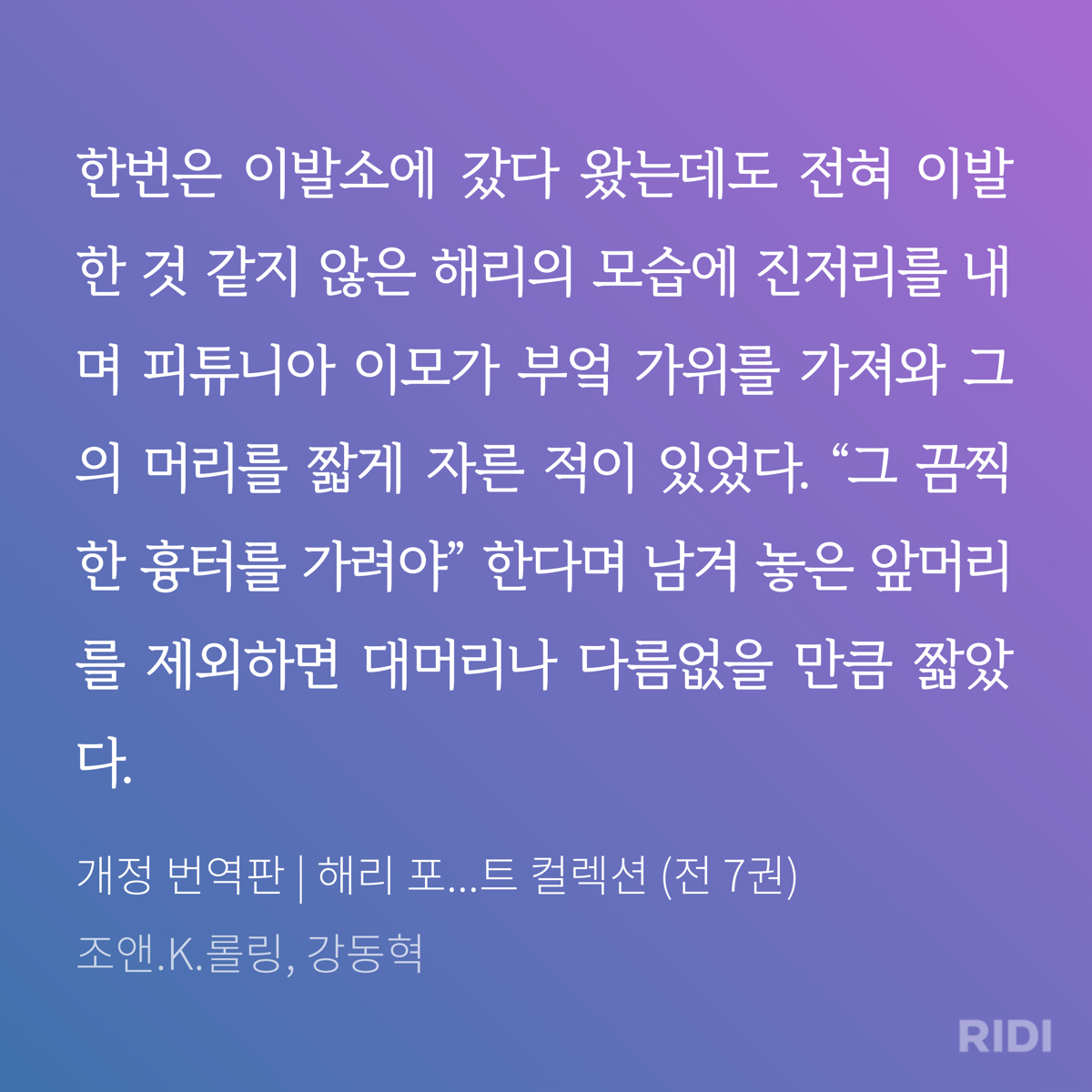 1편에서 해그리드를 만나기 전까지 해리는 부모님이 교통사고로 사망하셨다고 알았고, 이모네 가족들에게 정서적으로 학대와 방임을 겪으며 성장했다. 어린 해리에게 세상은 아무도 자신을 돌보거나 지지해주지 않는 곳이었다. 이모와 이모부, 사촌은 모두 숨 쉬듯 해리를 비난하고 괴롭힌다. 그들은 해리가 벽장에 갇히는 것도, 지독하게 싫은 피그 할머니네에 맡겨지는 것도, 머리카락이 엉망으로 잘리는 것도 모두 해리가 잘못을 저지르거나 이상하기 때문이라고 말한다. 이런 환경 속에서 해리는 자연스럽게 '해리 포터를 비난하는 태도'를 자신의 것으로 흡수했을 것 같다. 그것은 결코 해리 자신의 것이 아닌데도, 마치 태어날 때부터 가지고 있었던 것처럼 말이다. 그러나 사실 그 누구도 태어난 순간부터 자신을 미워하지는 않는다.