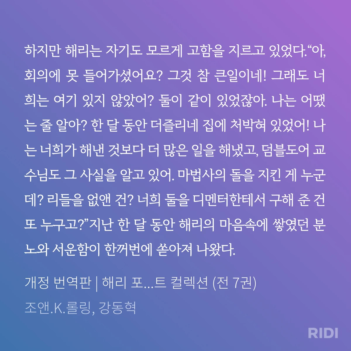 이처럼 소설 해리 포터 시리즈에 묘사된 외상 사건의 유형과 증상의 종류 및 개수, 증상이 나타난 기간 등을 종합해 보면, 해리는 PTSD 진단이 가능한 수준의 정신적 고통을 경험했다고 말할 수 있겠다. 어디까지나 나의 개인적인 소견으로는 그렇다. 그러나 실제 진단은 단순히 증상의 유무를 넘어서 이보다 훨씬 신중하고 전문적인 평가 과정이 필요한 일이다. 혹시라도 이 글을 읽으시는 누군가가 스트레스/외상으로 정신적 고통을 겪고 있다면, 인터넷에서 (이 글을 포함한) 정보를 찾아보기보다 빠른 시일 내에 전문가의 도움을 받으시길 진심으로 바란다.