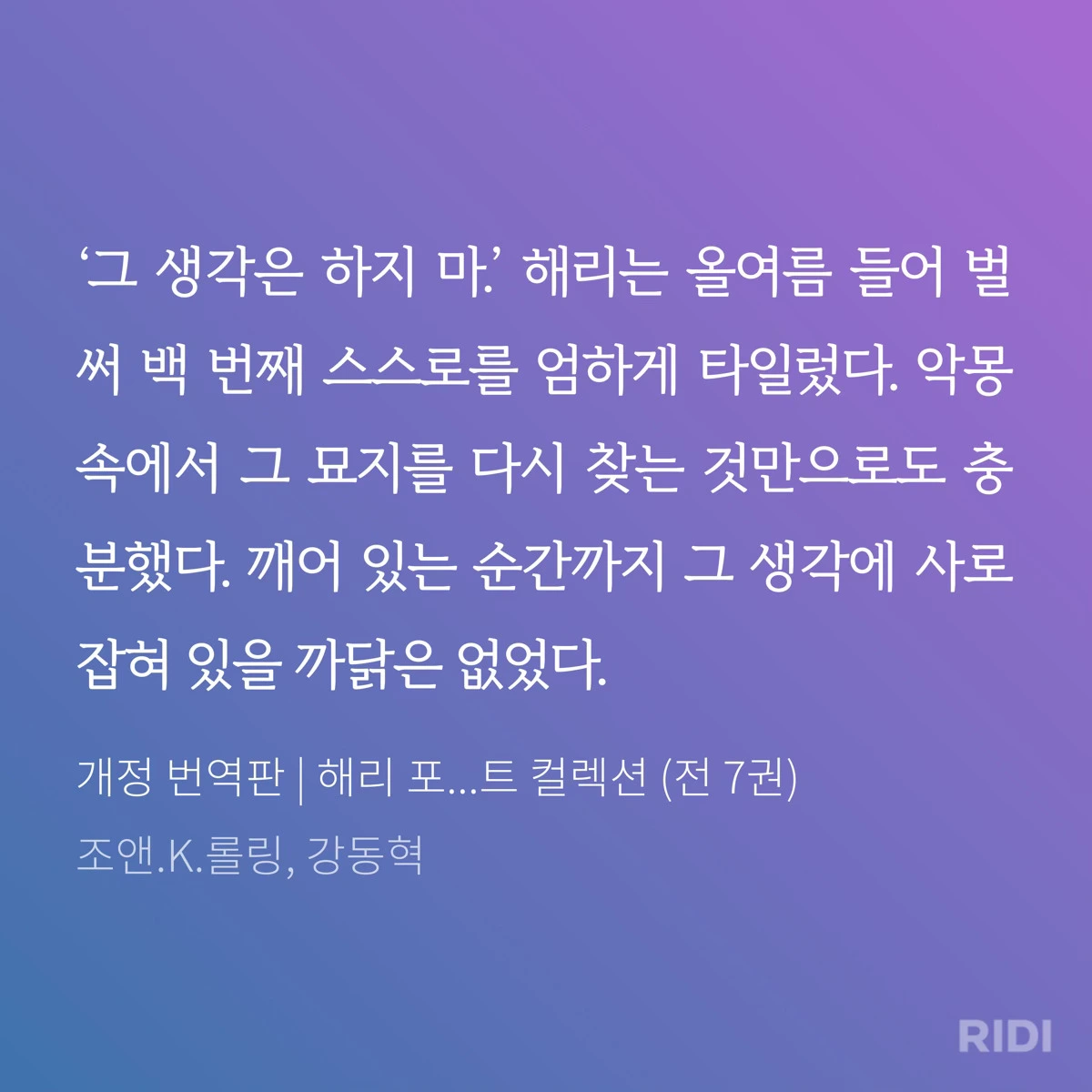 더불어 "진단" 자체가 갖는 의미와 부작용에 대해서도 이야기하고 싶은 것이 많지만, 이번 글에서는 PTSD란 무엇이며, 소설 속 해리의 모습이 그에 부합하는지를 논의해보기만 하려고 한다. 사실 여기까지만 보면 '그래서 뭐 어쩌라는 거지' 싶을 수도 있다. 단순히 증상만 나열해 봤을 뿐이니까. 그래서 해리 포터 PTSD 편은 다음에 한 편 더 작성할 예정이다. 다음 글에서는 외상 경험과 관련된 건설적인 이야기를 조금 해보려고 한다.