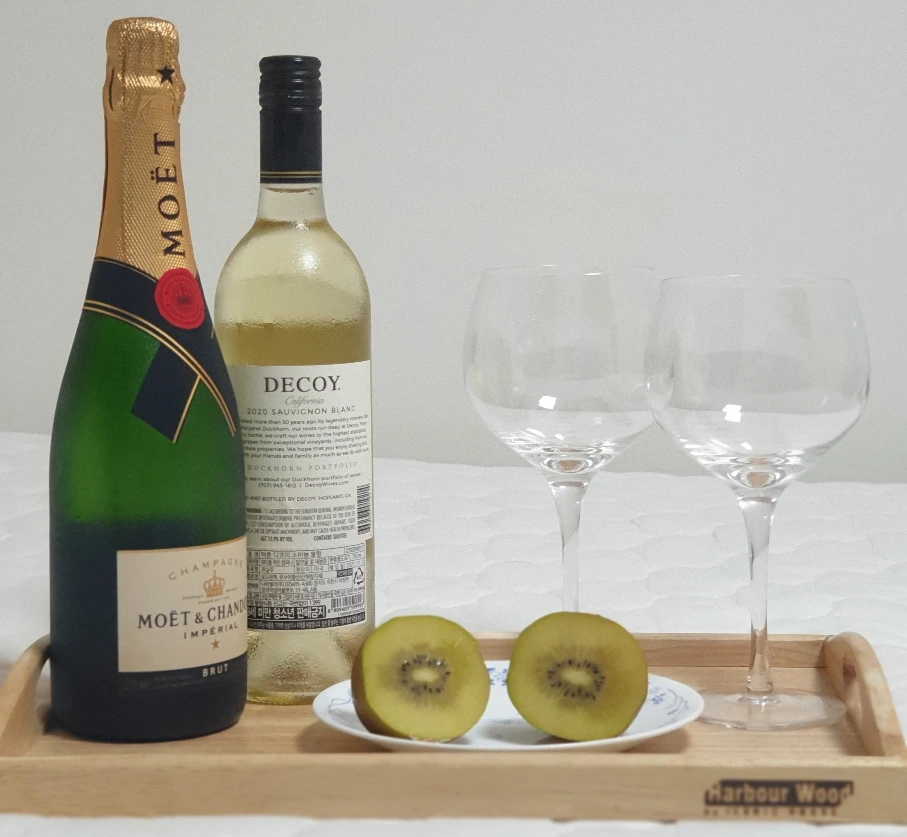 오퍼레터 받은 날, 와이프와 와인 한잔 했다. 키위와 함께.