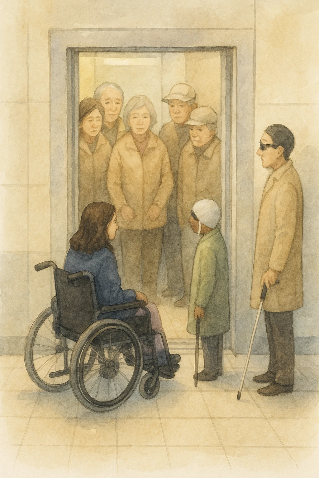 휠체어를 탄 시민이 엘리베이터를 이용하려 했지만,