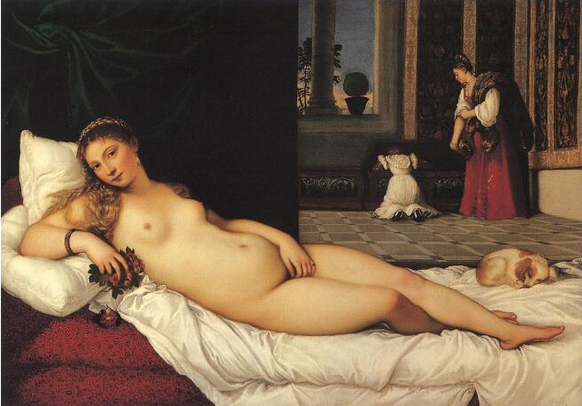 티치아노 그림의 제목은 우르비노의 비너스입니다. 이 그림에 주인공인 여성은 창녀였습니다. 창녀든 뭐든 제목이 비너스니, 당시 기준을 통과(pass)할 수 있었죠.~~!!!