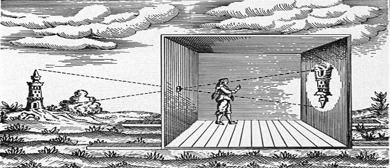 카메라의 조상 옵스큐라옵스큐라는 카메라의 조상 정도 되는 것인데 이렇게 생겼습니다. 창을 통해 빛이 들어오게 해서 거울을 통해서 반사하는 방법으로 암실 밖은 사람이나 풍경의 상이 맺히게 해서 그 윤곽을 따라서 그림을 그렸다는 것입니다.