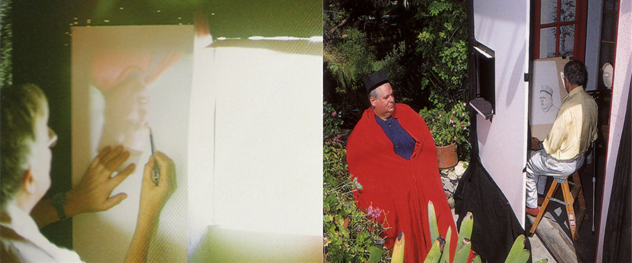호크니가 옵스큐라를 이용해 그림 그리는 모습 호크니가 옵스큐라를 직접 실험한 모습이 그의 책에 실려 있는데요.