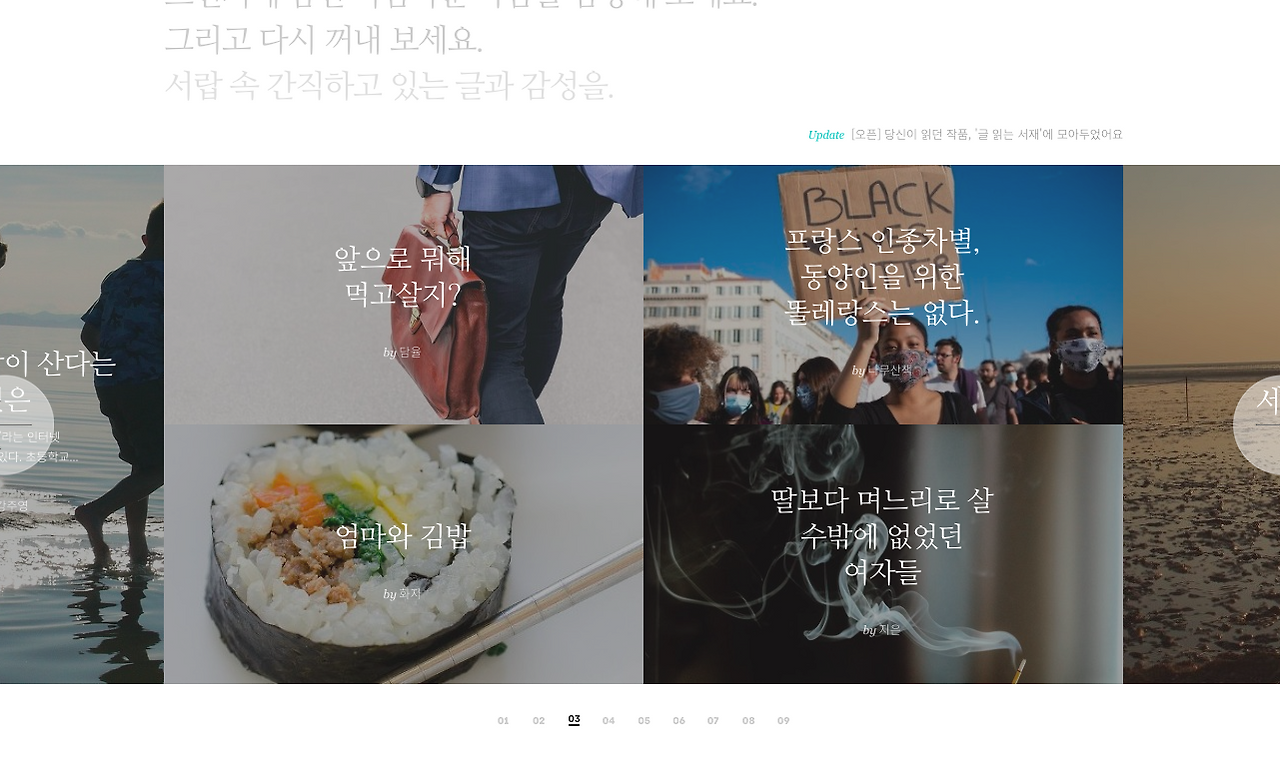 과정의 성취와 더불어, 결과물의 성취도 얻을 수 있었는데... 다름 아니라, 내가 쓴 글 중 <앞으로 뭐해 먹고살지?>라는 글이 브런치 대문에 걸리게 된 것이다! 갑자기 해당 글의 조회수가 너무 높아져서, '이게 무슨 일이지?' 생각하며 브런치 홈 화면에 들어가니 나의 글이 대문에 걸려 있었다. 뜻밖의 일이라 당황스러웠지만 흥분을 감출 수 없었다.ㅎㅎ 물론 조회수는 며칠 지속하지 못했지만, 최고 5천을 찍으며 아름답게 마무리를 하였다.